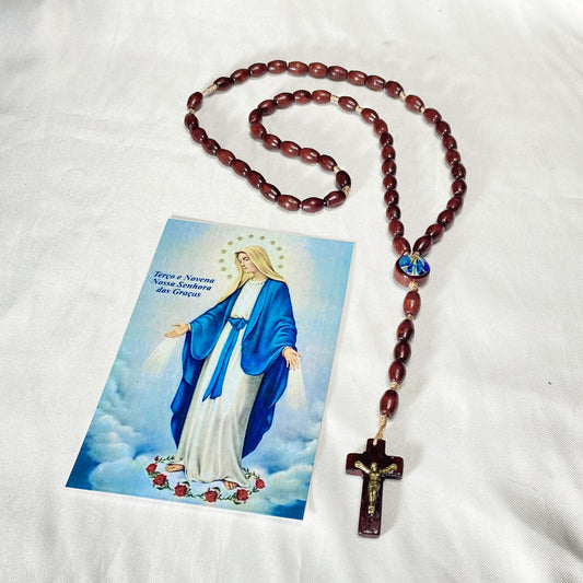 TERÇO DE MADEIRA NOSSA SENHORA DAS GRAÇAS 08MM (3 UNIDADES)