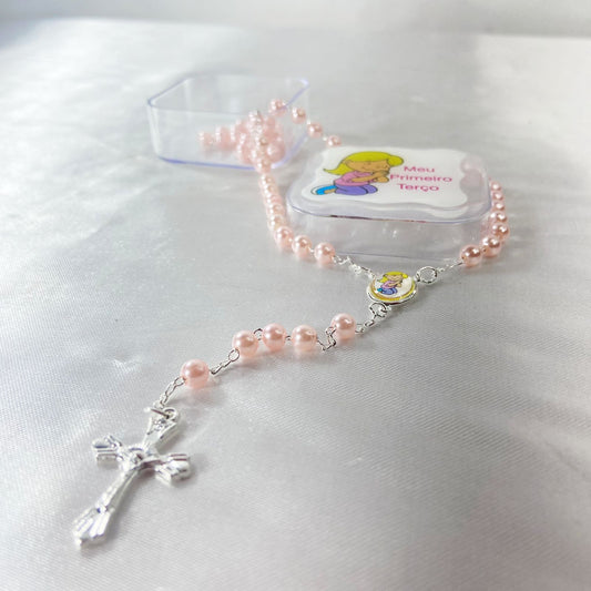 TERÇO PÉROLA NA CAIXINHA MEU PRIMEIRO TERÇO MENINA (6UNIDADES)