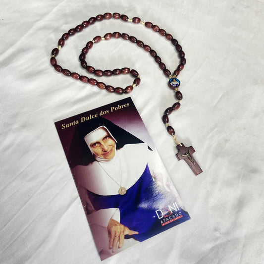 TERÇO DE MADEIRA SANTA DULCE DOS POBRES 8MM (3 UNIDADES)