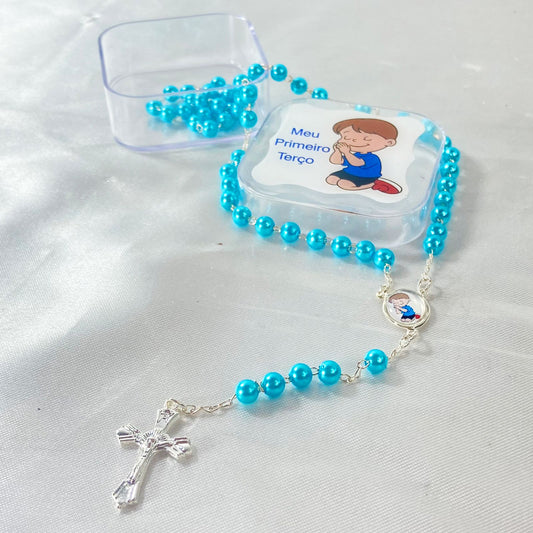 TERÇO PÉROLA NA CAIXINHA MEU PRIMEIRO TERÇO MENINO (6UNIDADES)