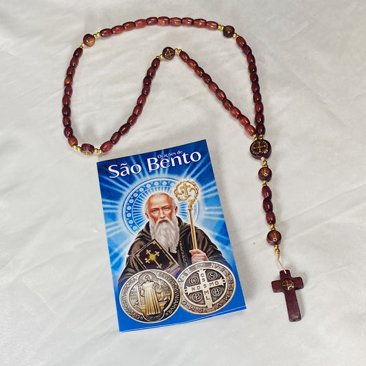 TERÇO DE MADEIRA SÃO BENTO 7 MEDALHAS 8MM (3 UNIDADES)