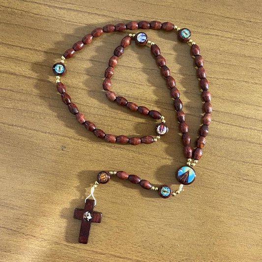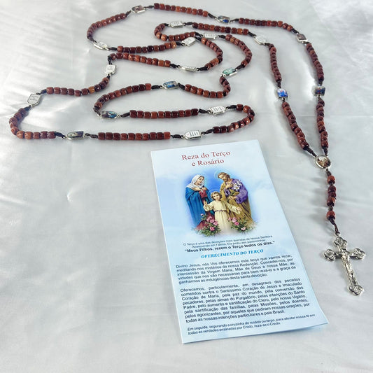TERÇO DE MADEIRA NOSSA SENHORA APARECIDA 7 MEDALHAS (3 UNIDADES)
