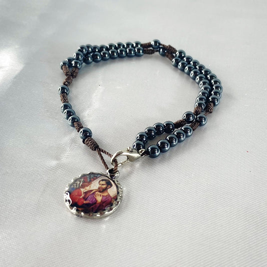 TERÇO PULSEIRA HEMATITA SANTA RITA DE CÁSSIA 4MM (6 UNIDADES)