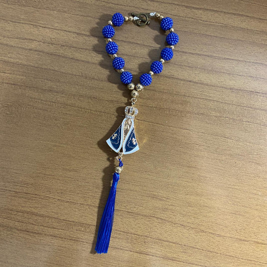 DEZENA PARA CARRO NOSSA SENHORA APARECIDA AMORA AZUL MOD2 12MM (3 UNIDADES)