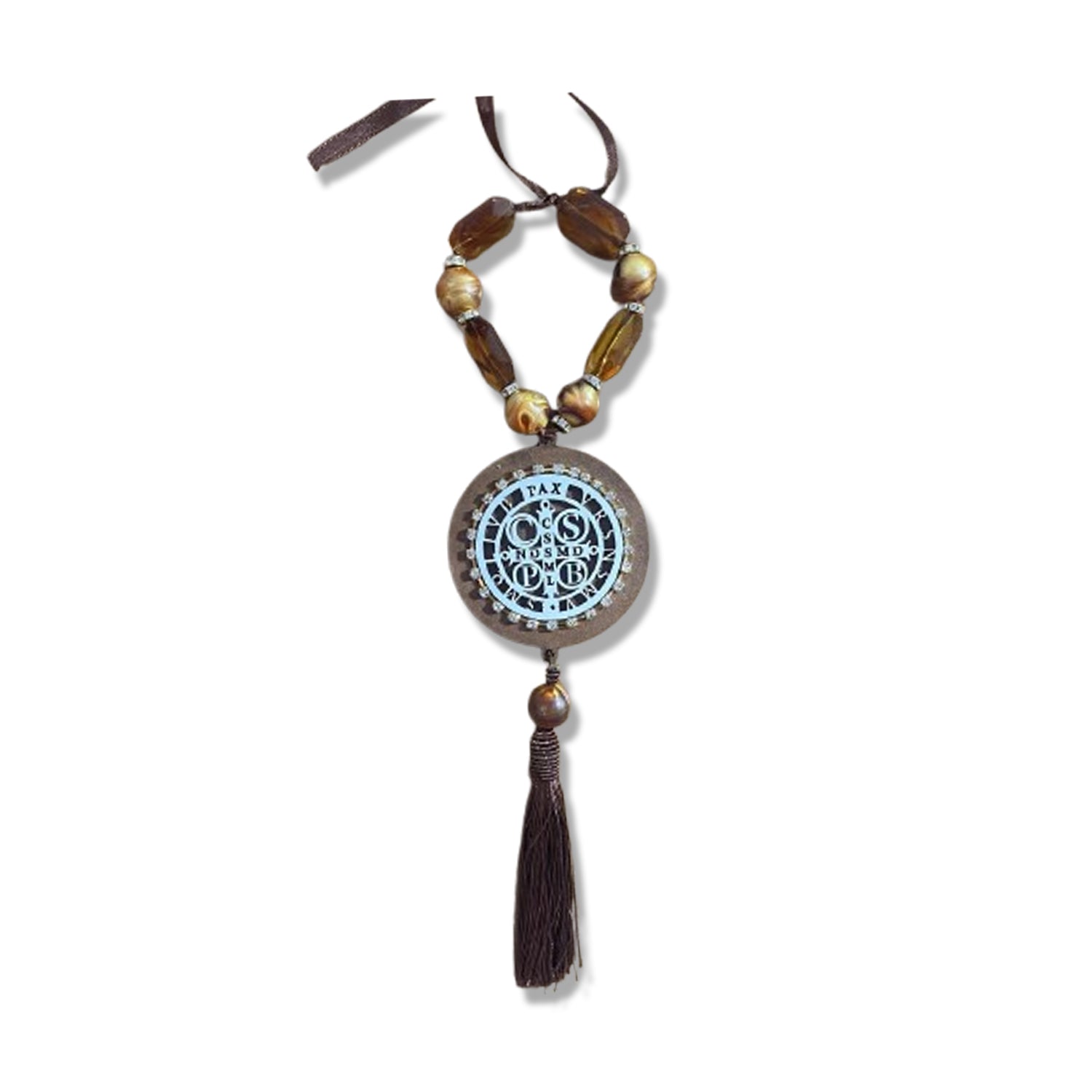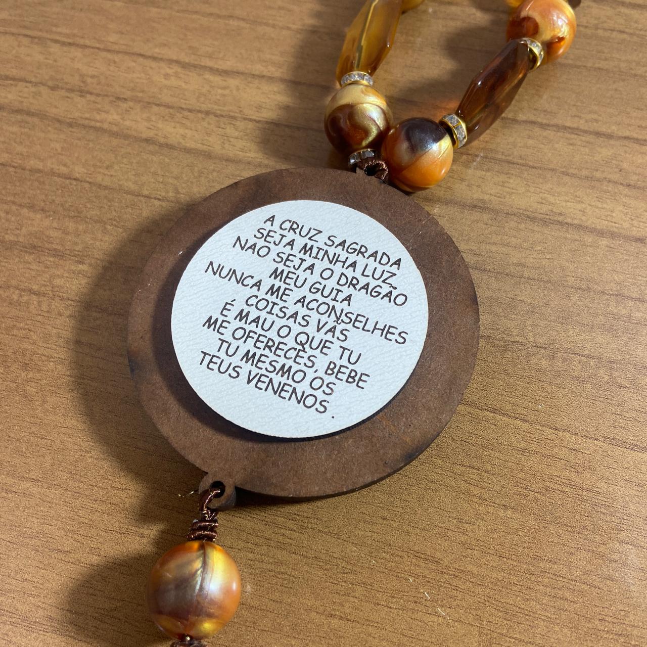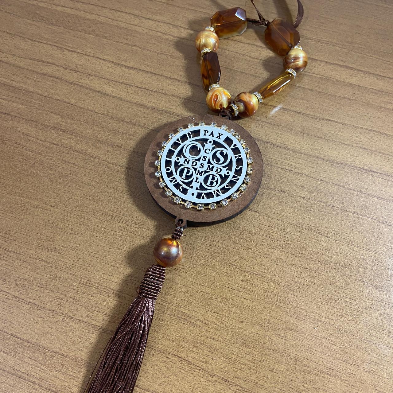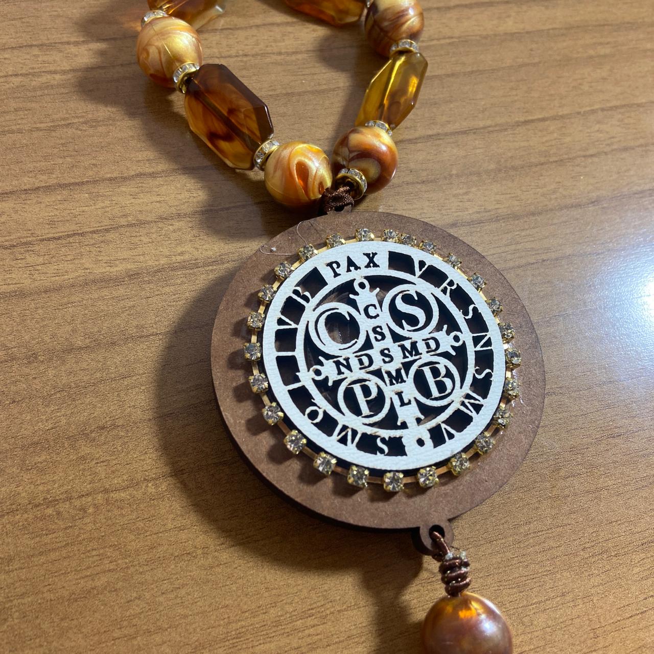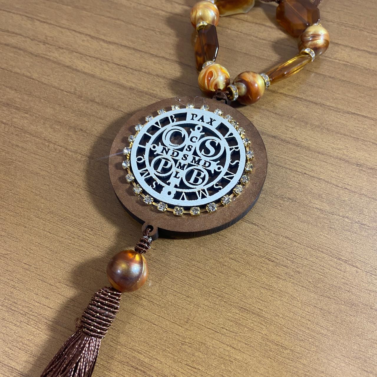 ADORNO COM PEDRARIA MEDALHA SÃO BENTO MDF E STRASS 30CM (1 UNIDADE)