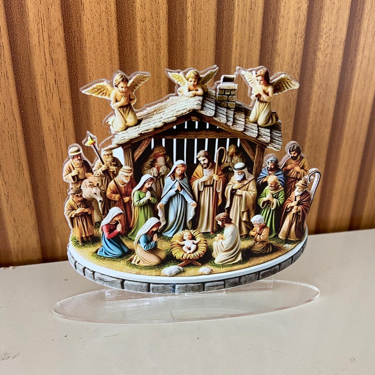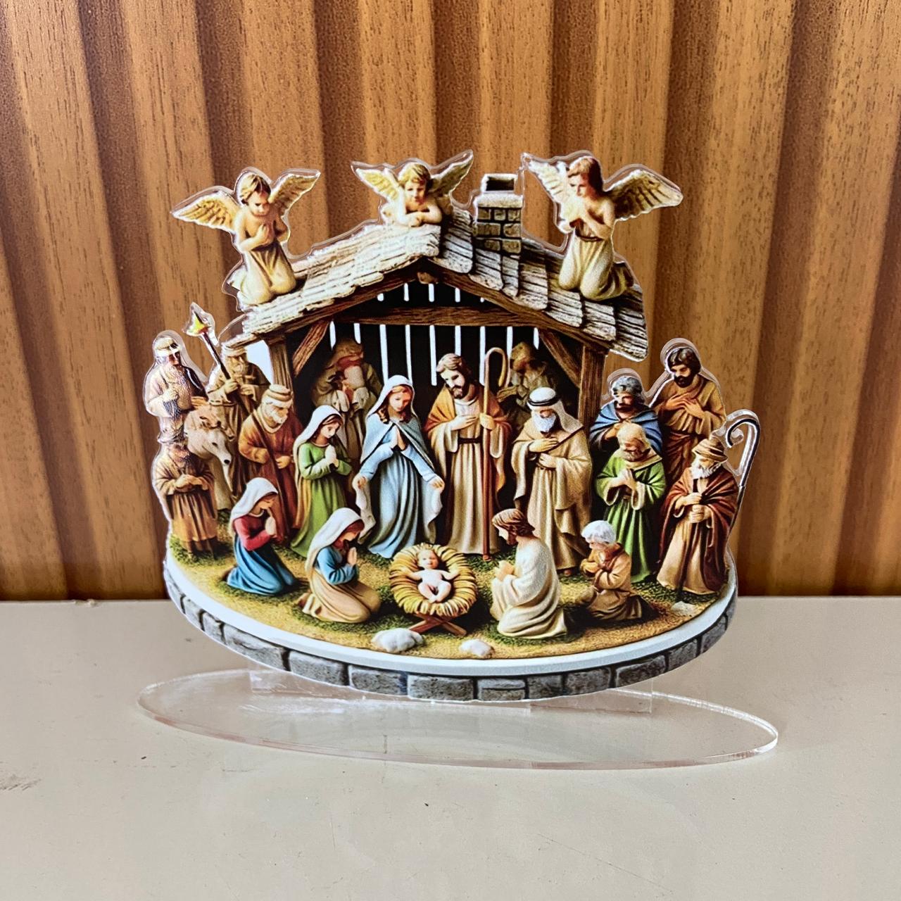 ADORNO DE MESA ACRÍLICO RESINADO PRESÉPIO 10,5CM (1 UNIDADE)