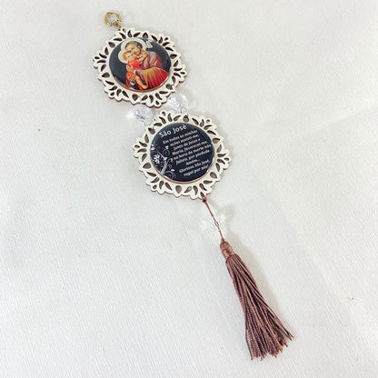 O adorno duplo é um lindo objeto de decoração religioso para proteção e benção.Ele pode ser usado para decorar paredes, portas, painéis ou qualquer outro espaço que você desejar. Além disso, o adorno duplo é uma ótima opção de presente para amigos e familiares.Feito com materiais de alta qualidade, o adorno é durável e resistente, garantindo uma decoração de longa duração. Ele também é fácil de instalar, pois possui um suporte em cima para pendurar na parede ou em outros lugares. Seja para decorar sua casa, escritório, ou presentear alguém especial, este adorno é uma escolha única e significativa, agregando beleza e devoção ao ambiente.
