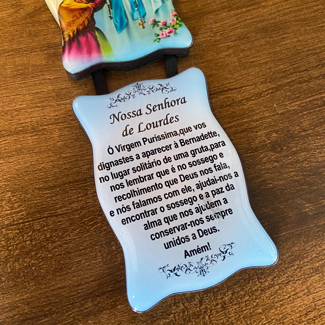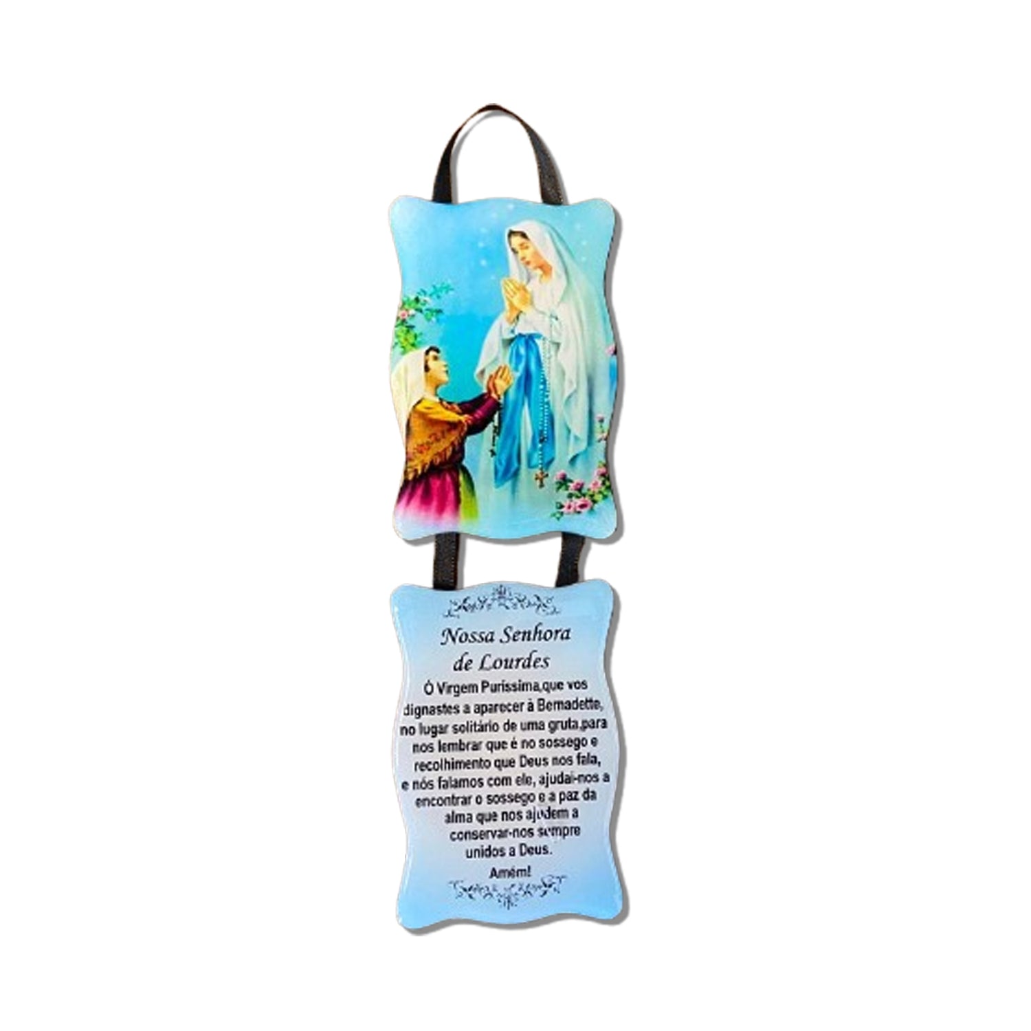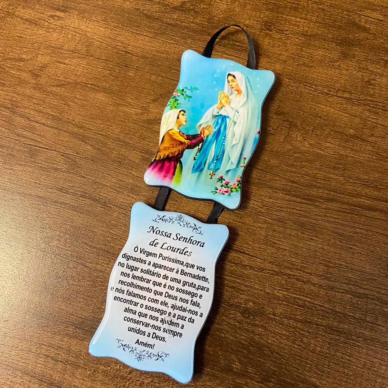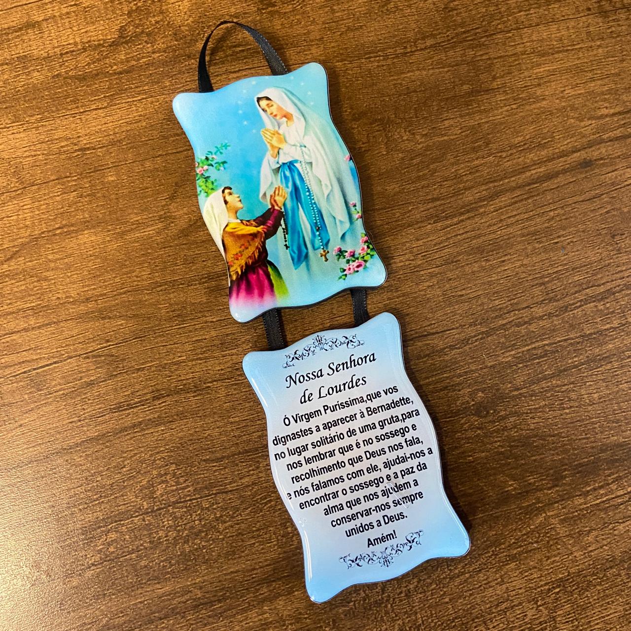 ADORNO DUPLO QUADRADO FITA NOSSA SENHORA DE LOURDES (1 UNIDADE)