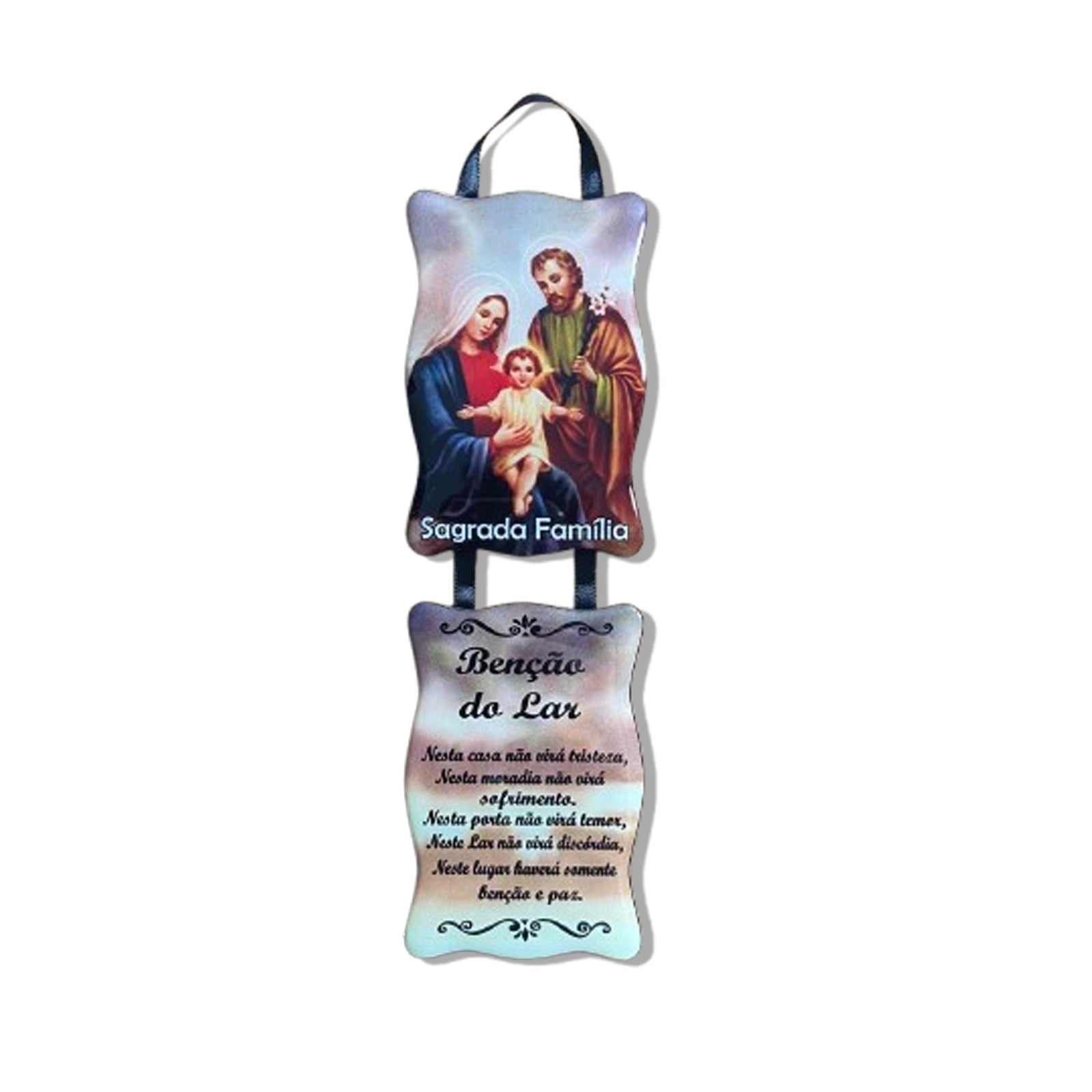 O adorno duplo é um lindo objeto de decoração religioso para proteção e benção.Ele pode ser usado para decorar paredes, portas, painéis ou qualquer outro espaço que você desejar. Além disso, o adorno duplo é uma ótima opção de presente para amigos e familiares.Feito com materiais de alta qualidade, o adorno é durável e resistente, garantindo uma decoração de longa duração. Ele também é fácil de instalar, pois possui um suporte em cima para pendurar na parede ou em outros lugares.
