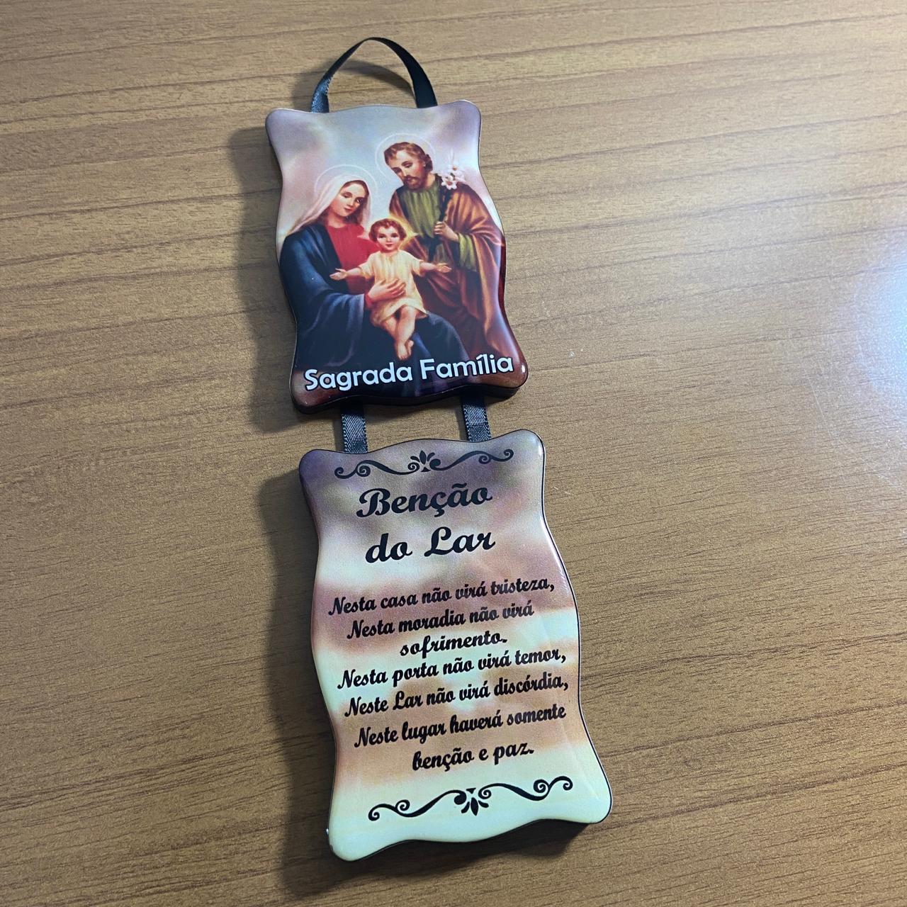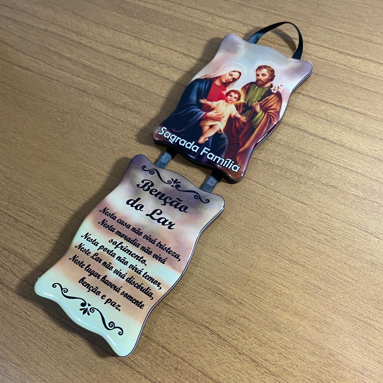 ADORNO DUPLO QUADRADO FITA SAGRADA FAMÍLIA (1 UNIDADE)