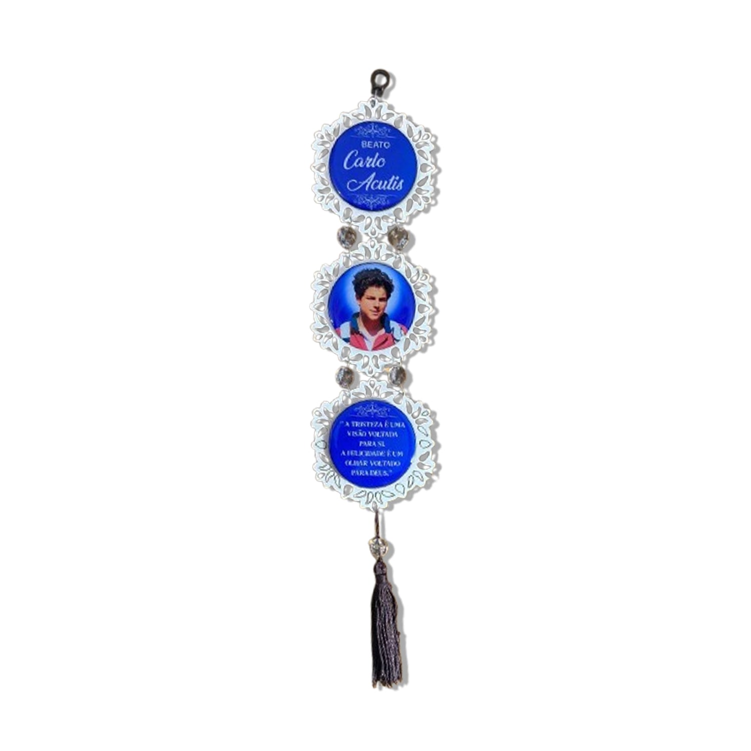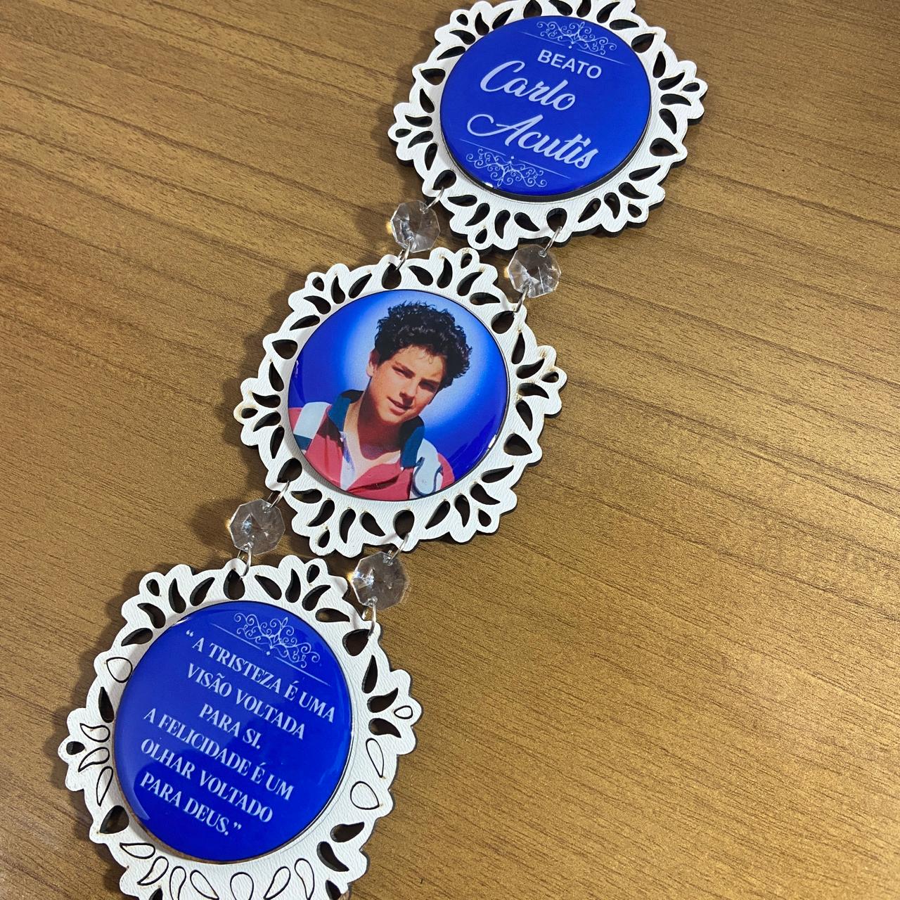 ADORNO TRIPLO REDONDO BRANCO BEATO CARLO ACUTIS MOD 1 (1 UNIDADE)