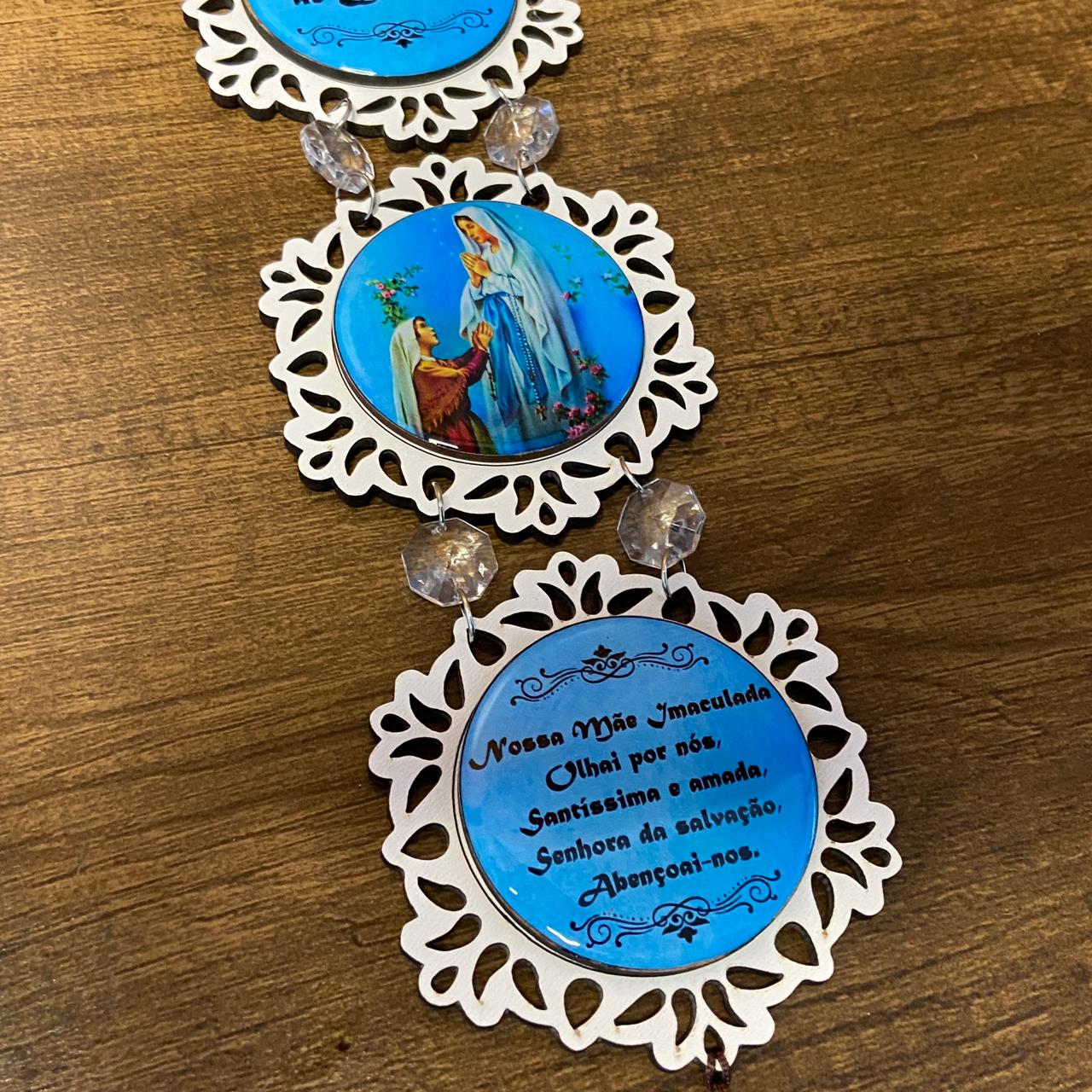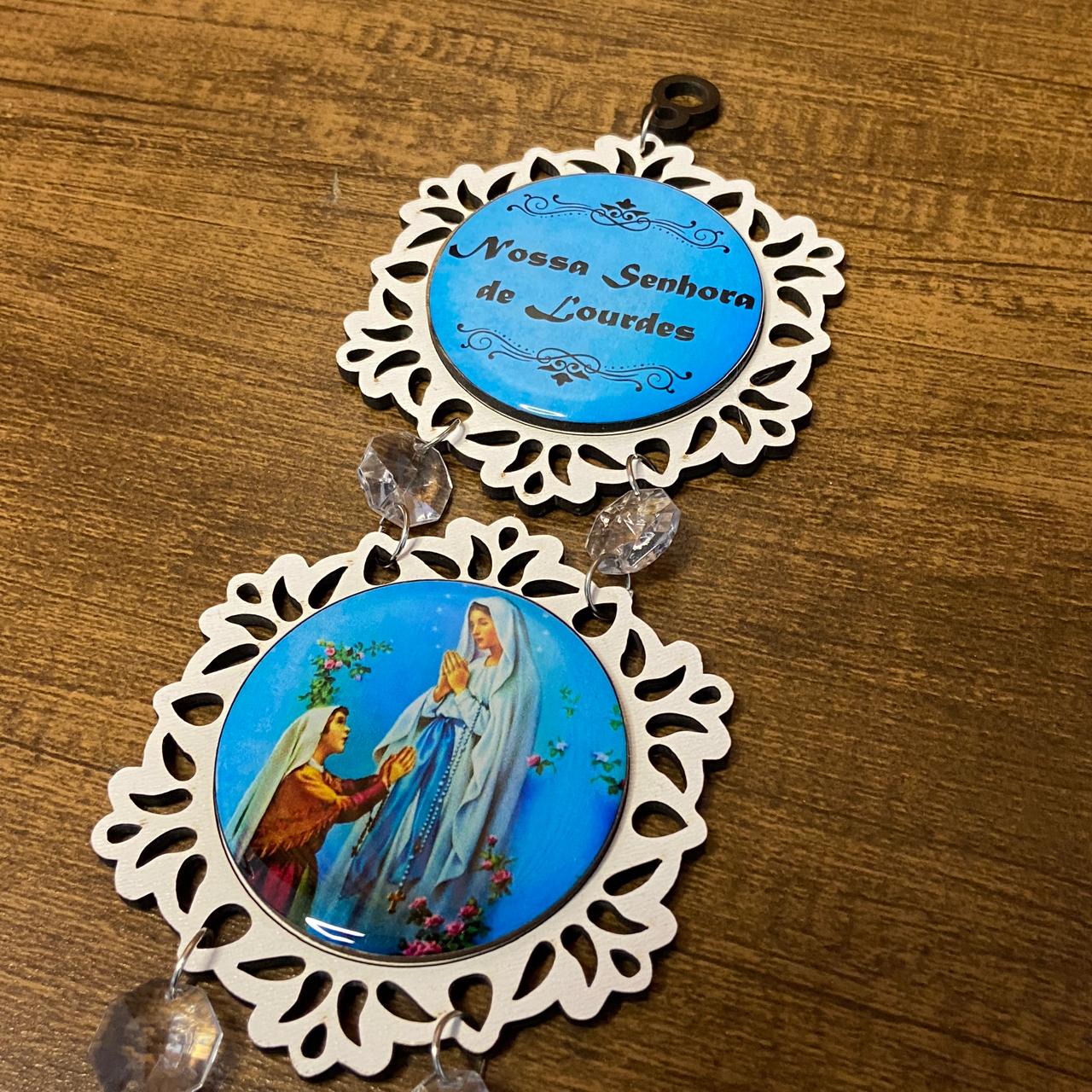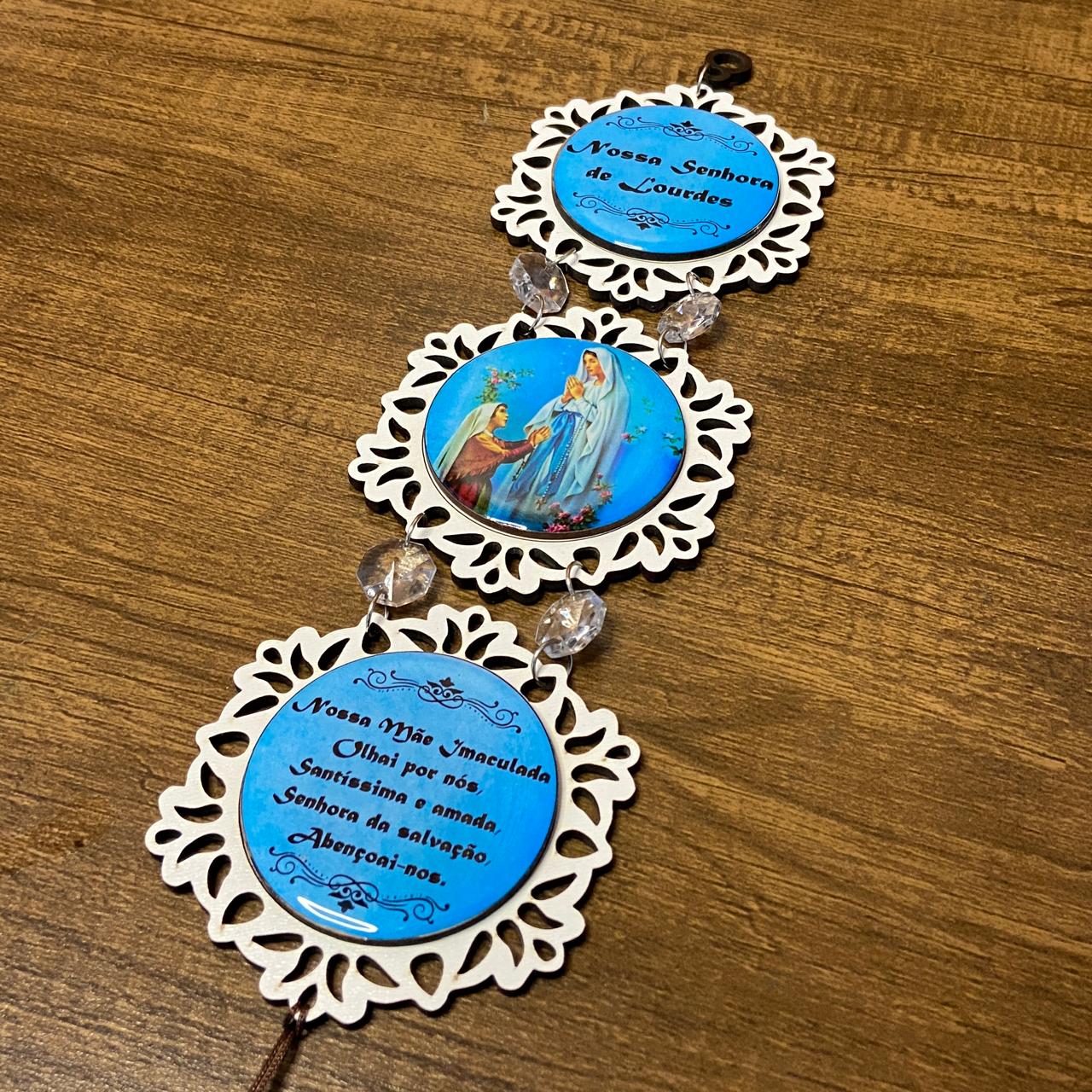 ADORNO TRIPLO REDONDO BRANCO NOSSA SENHORA DA LOURDES (1 UNIDADE)