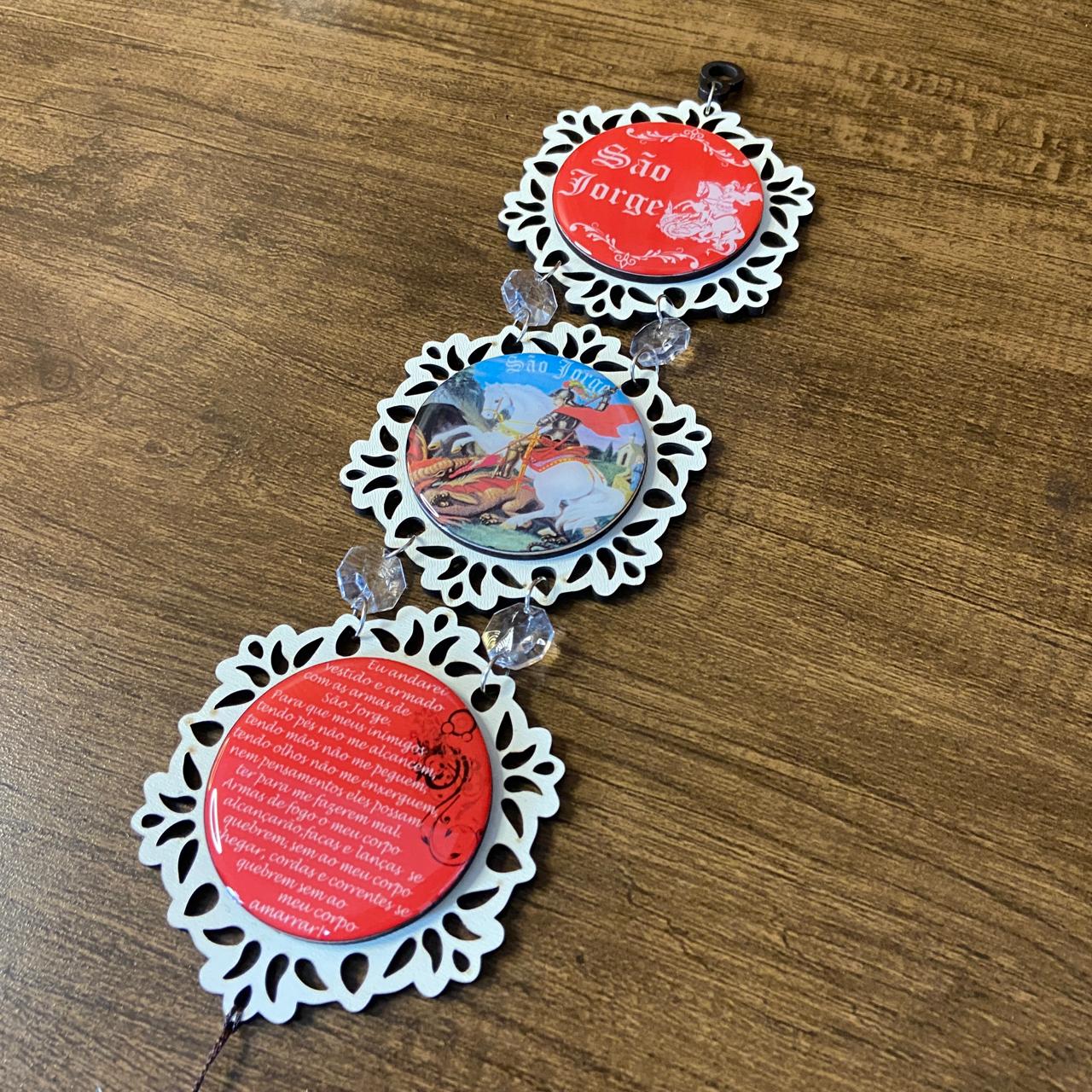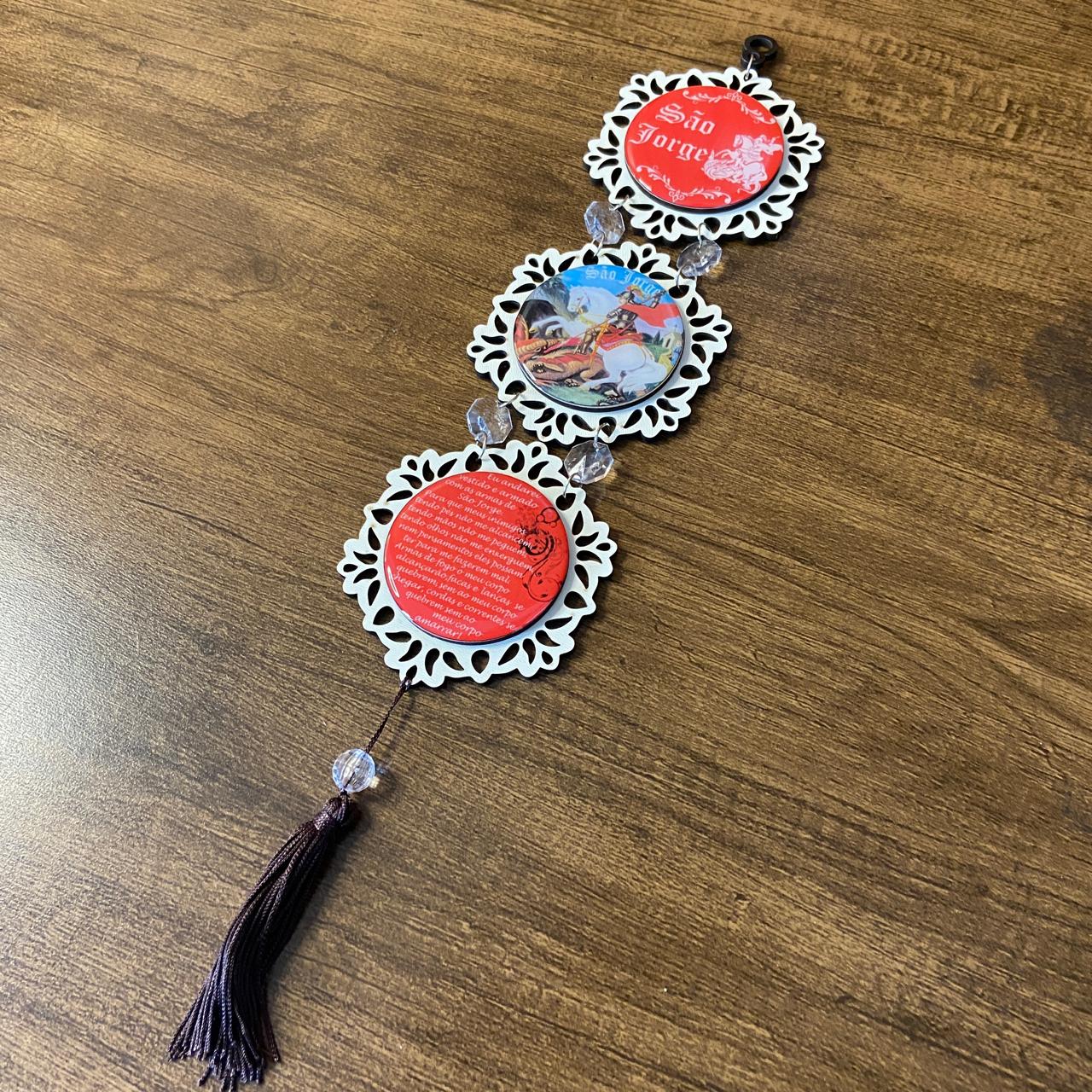 O adorno triplo redondo é um lindo objeto de decoração religioso para proteção e benção.Ele pode ser usado para decorar paredes, portas, painéis ou qualquer outro espaço que você desejar. Além disso, o adorno triplo redondo é uma ótima opção de presente para amigos e familiares.Feito com materiais de alta qualidade, o adorno é durável e resistente, garantindo uma decoração de longa duração. Ele também é fácil de instalar, pois possui um suporte em cima para pendurar na parede ou em outros lugares.
