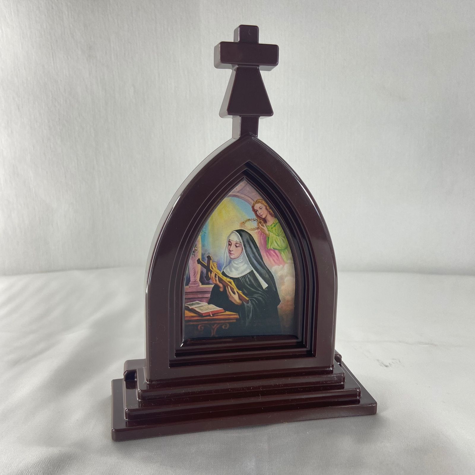 CAPELA ACRÍLICA G SANTA RITA DE CÁSSIA MARROM 18X12CM (1 UNIDADE)