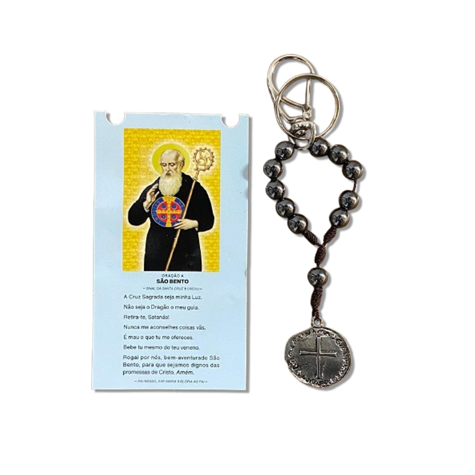 Leve a sua devoção para todos os lugares com este chaveiro dezena feito com contas de hematita e prático mosquetão. Mais que um acessório, ele é um símbolo de fé, proteção e conexão espiritual. Ideal para pendurar em chaves, bolsas ou mochilas, esse chaveiro combina beleza, resistência e um propósito especial: manter sua oração sempre por perto.