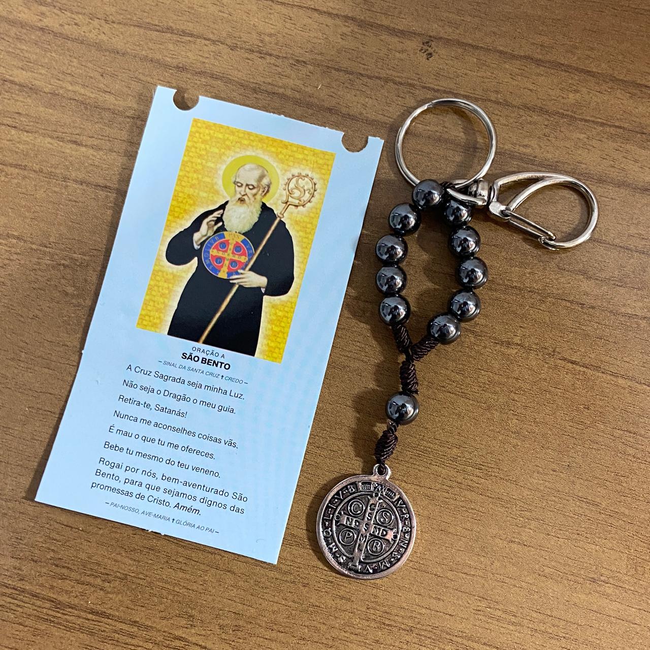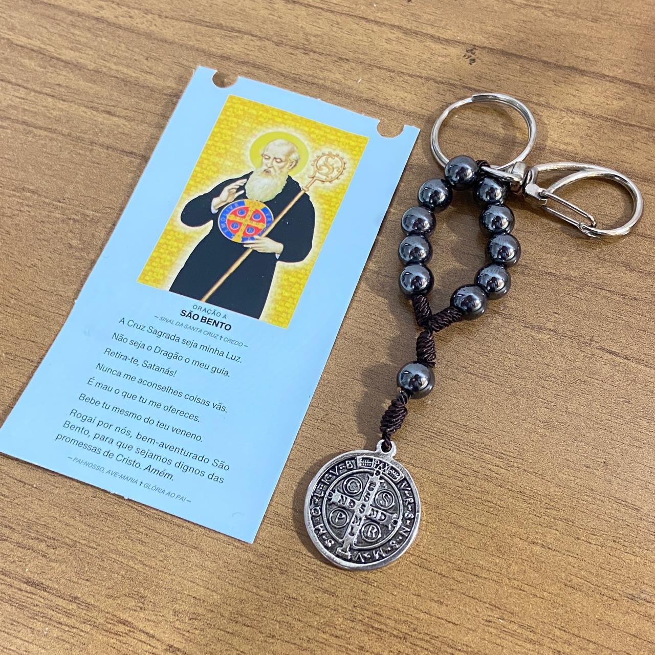 CHAVEIRO DEZENA HEMATITA COM MOSQUETE MEDALHA SÃO BENTO (3 UNIDADES)