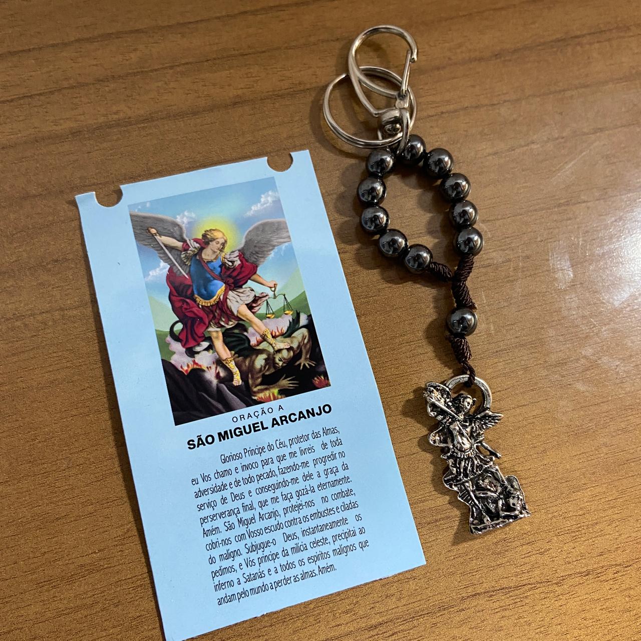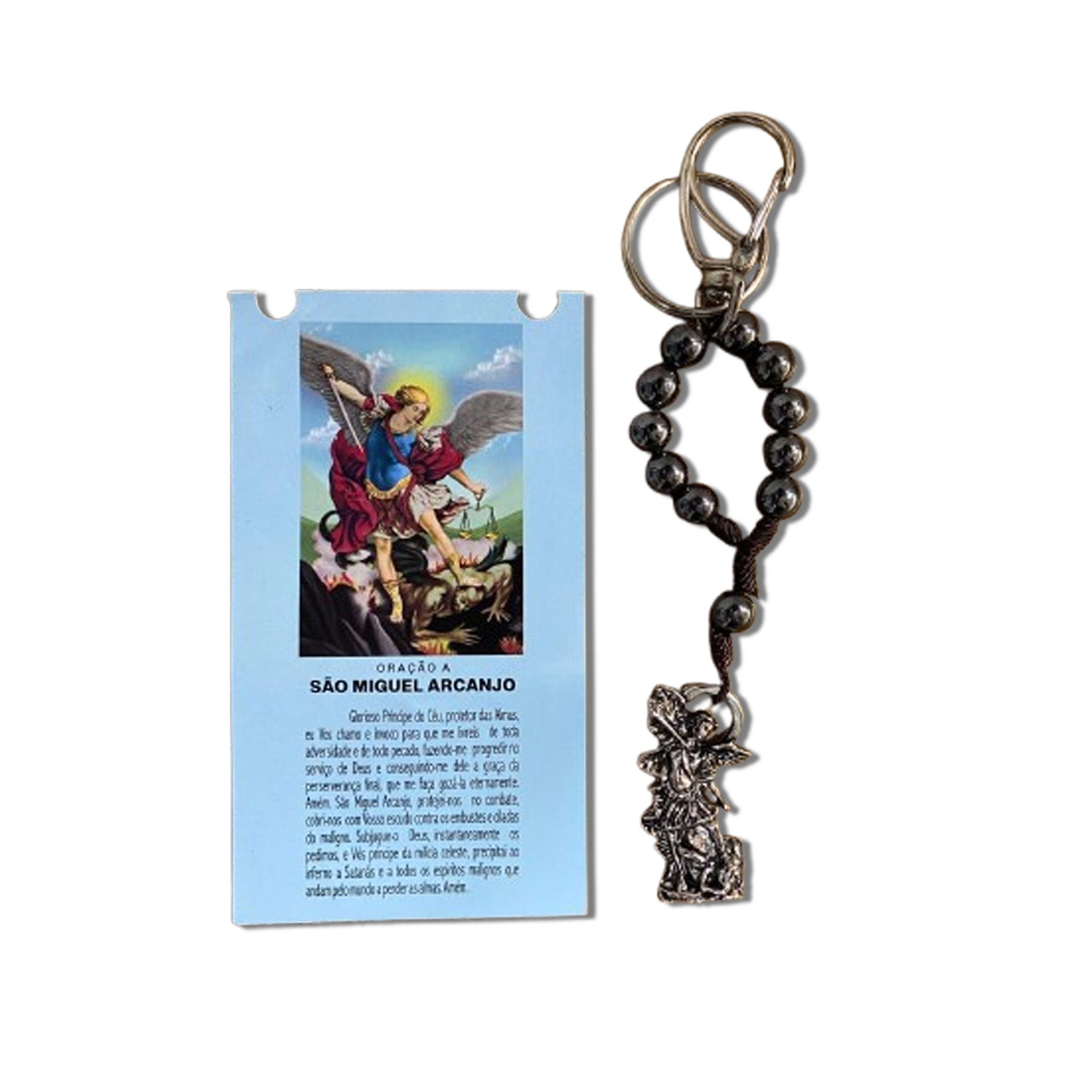CHAVEIRO DEZENA HEMATITA COM MOSQUETE SÃO MIGUEL ARCANJO (3 UNIDADES)