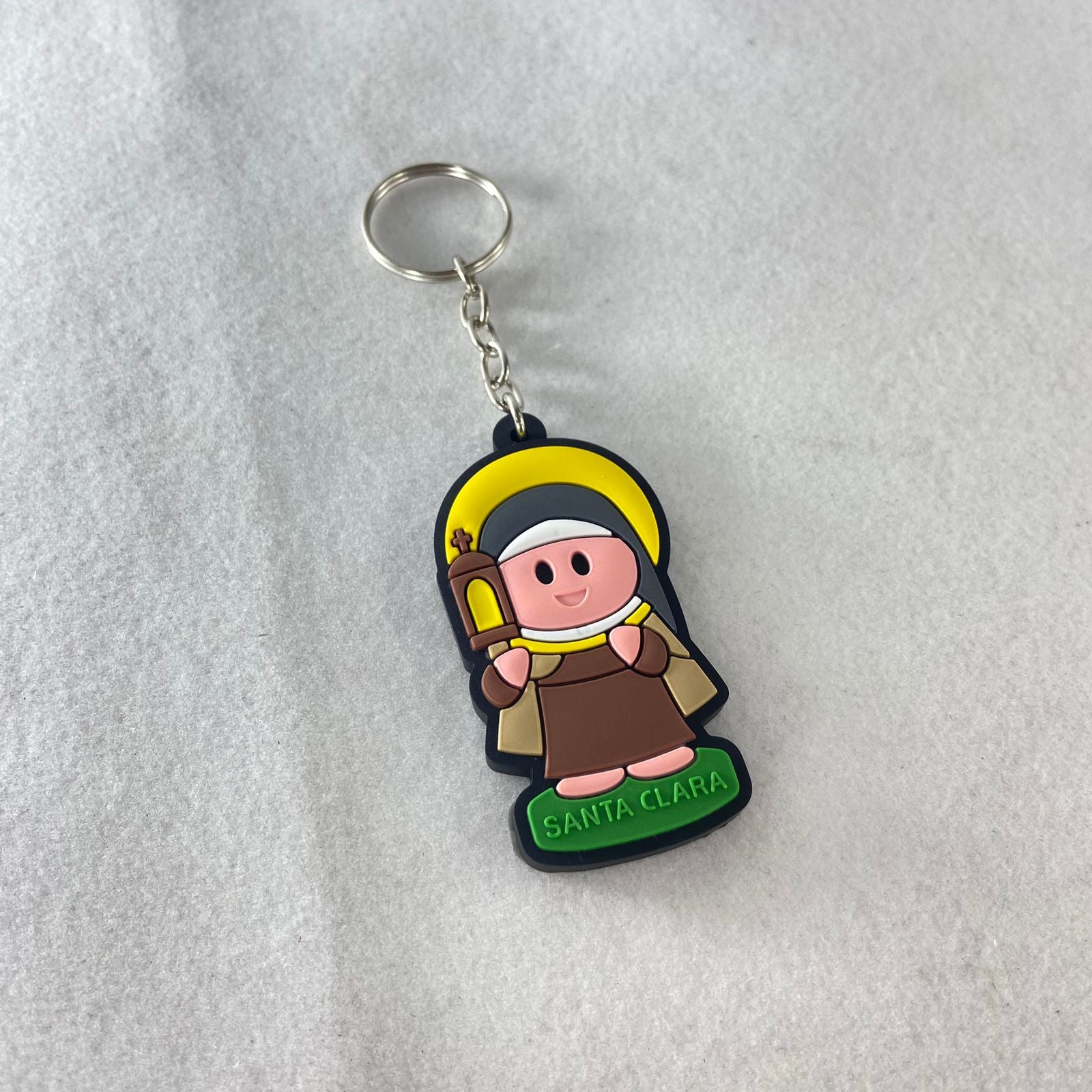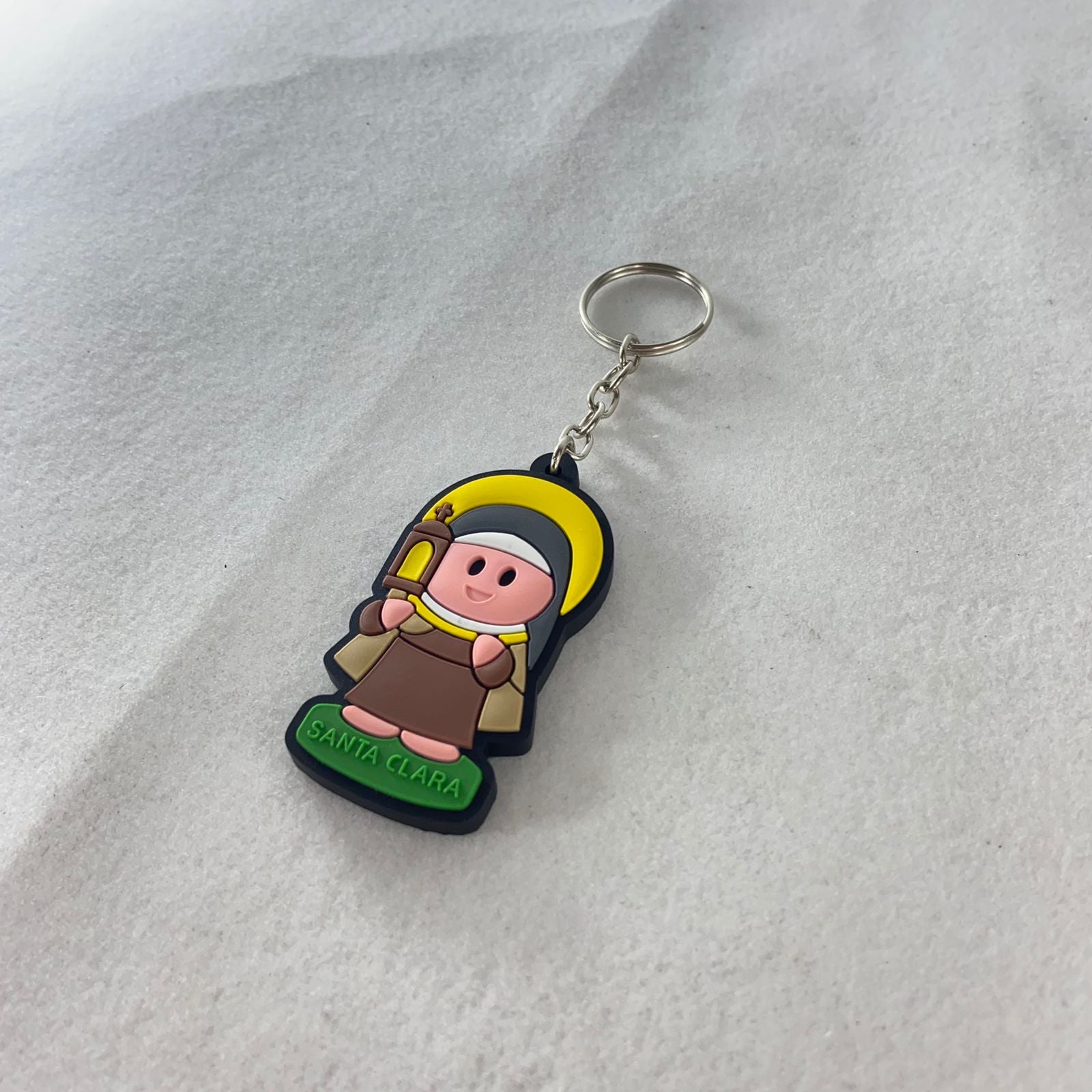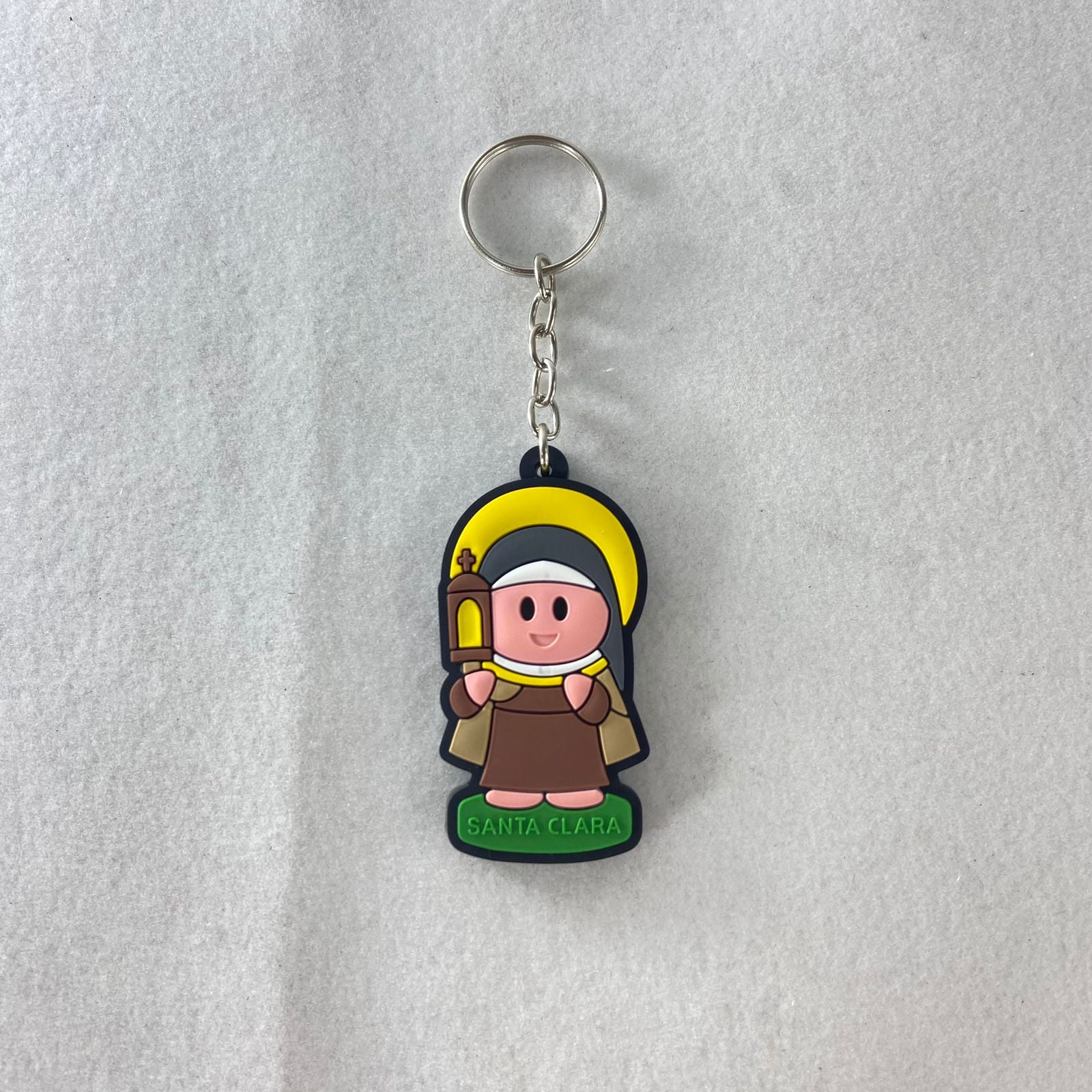 O chaveiro emborrachado é um conjunto de 12 chaveiros temáticos. Cada um é feito em borracha de alta qualidade, durável e flexível. Com um tamanho compacto e prático, estes chaveiros são perfeitos para serem usados em suas chaves de casa, carro, escritório ou em sua mochila. Eles são leves e resistentes, ideais para o uso diário, e também são excelentes para presentear em ocasiões especiais, como batismos, primeiras comunhões, confirmações e outras celebrações religiosas.
