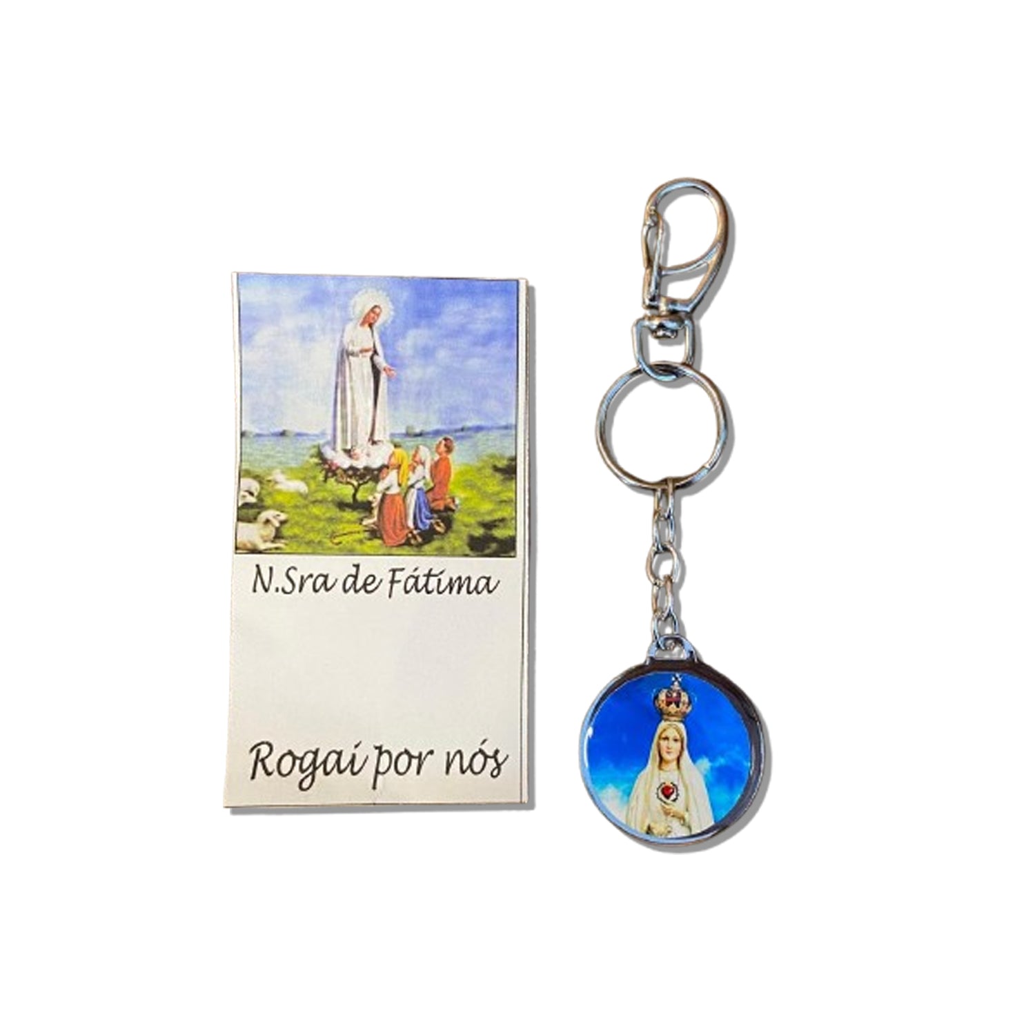 CHAVEIRO METAL DUPLA FACE COM MOSQUETE NOSSA SENHORA DE FÁTIMA (6 UNIDADES)