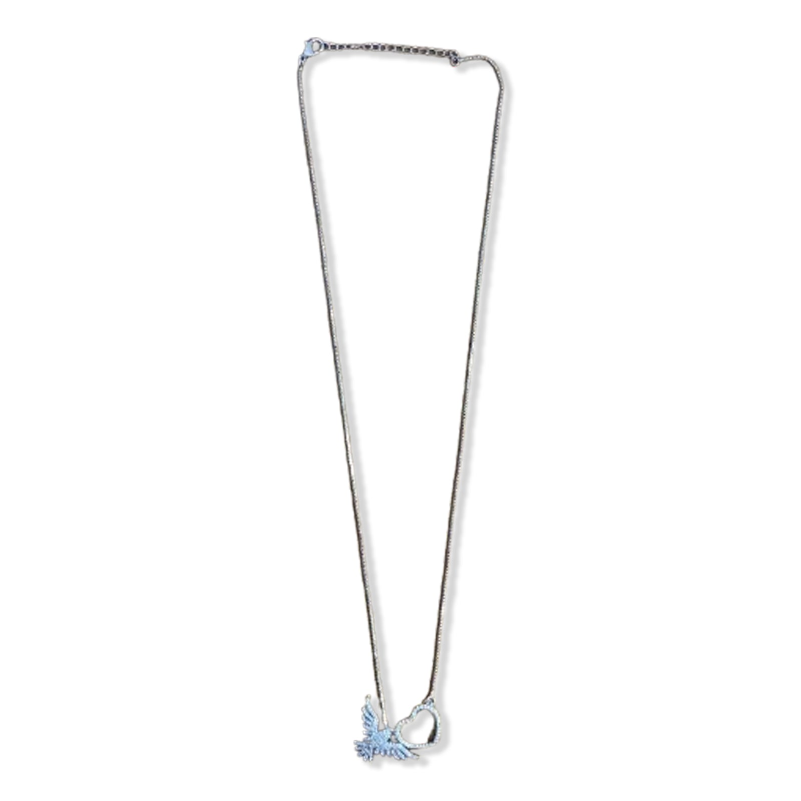 COLAR PRATEADO DIVINO ESPÍRITO SANTO E CORAÇÃO COM STRASS (1 UNIDADE)