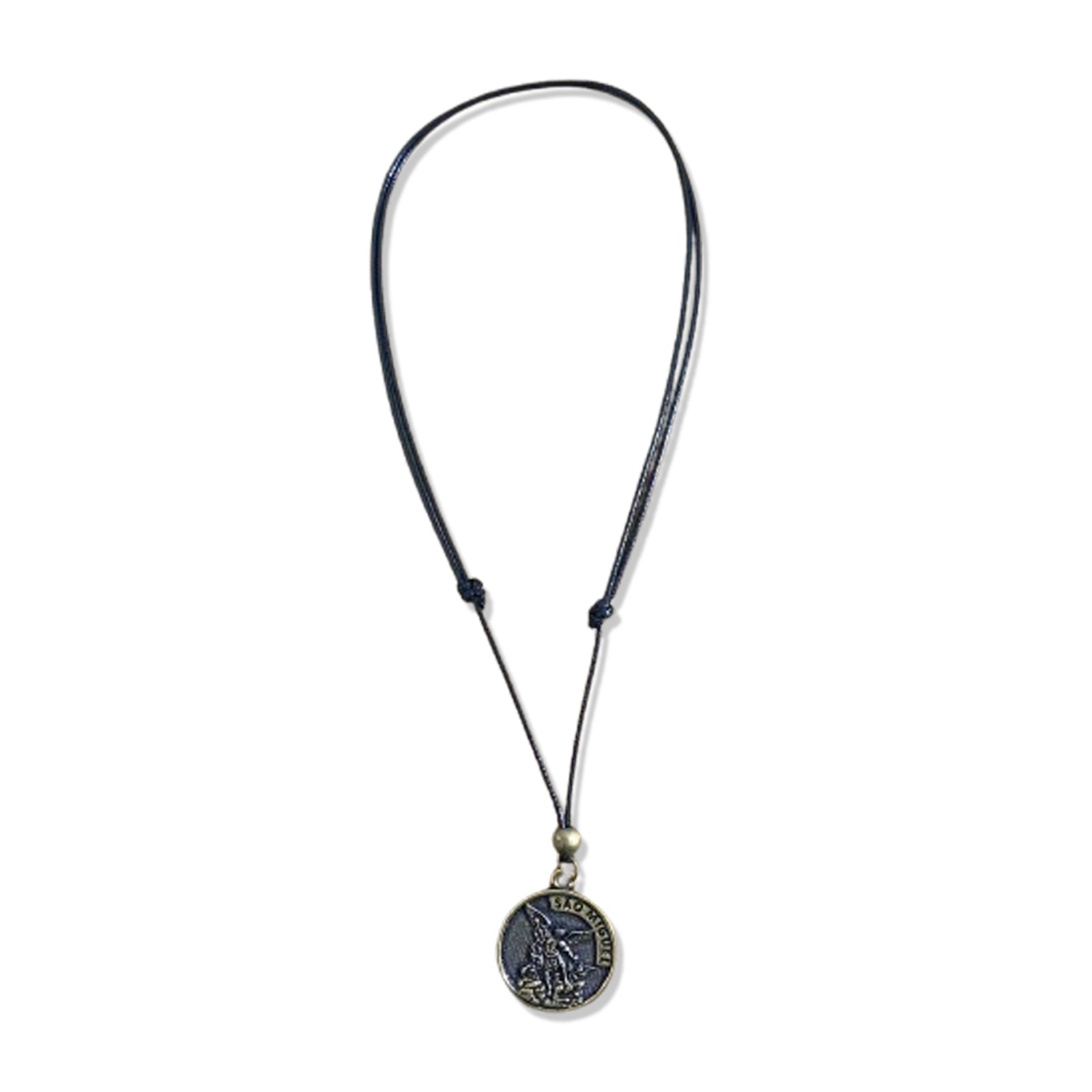 CORDÃO ENCERADO REGULÁVEL MEDALHA DE SÃO MIGUEL ARCANJO OURO VELHO (3 UNIDADES)