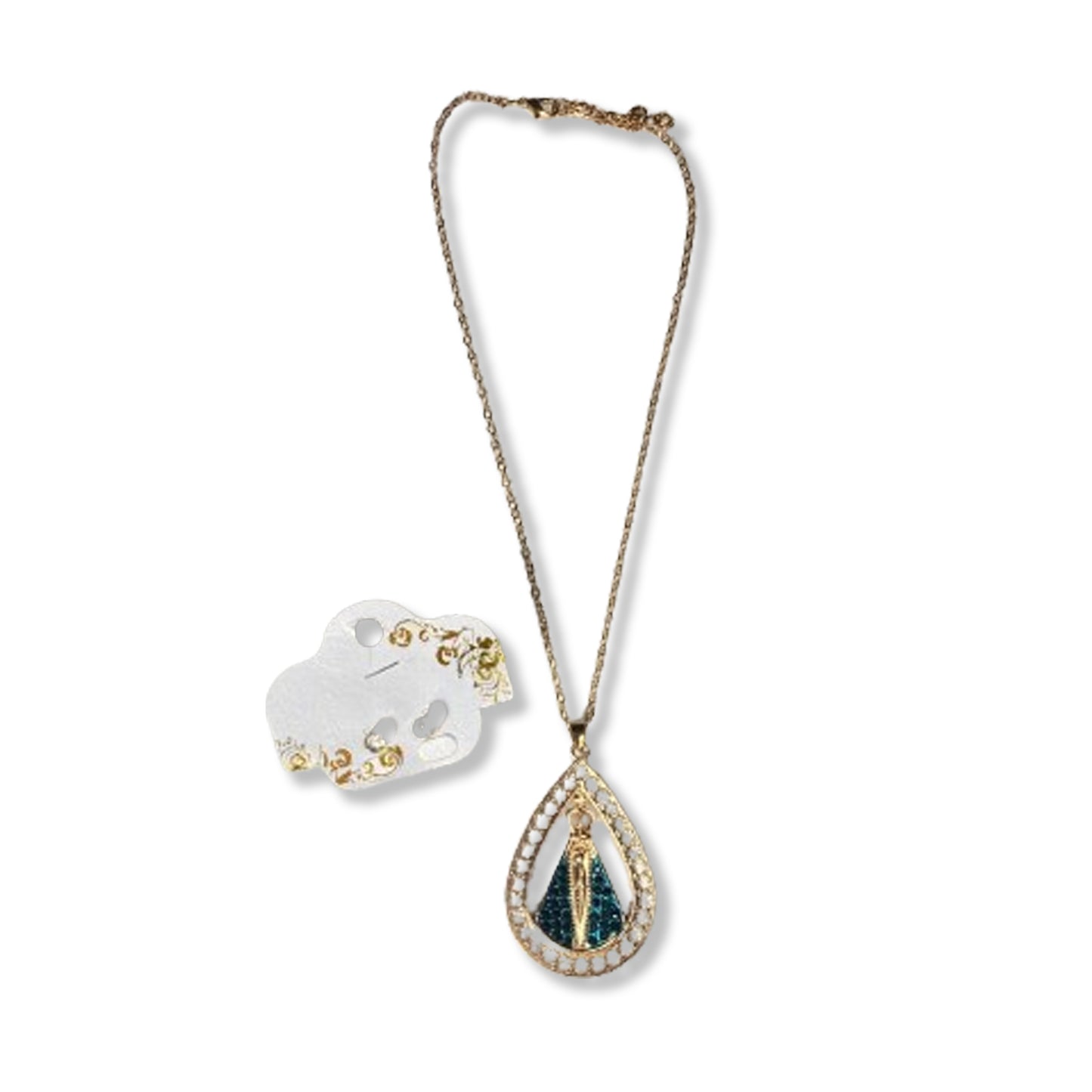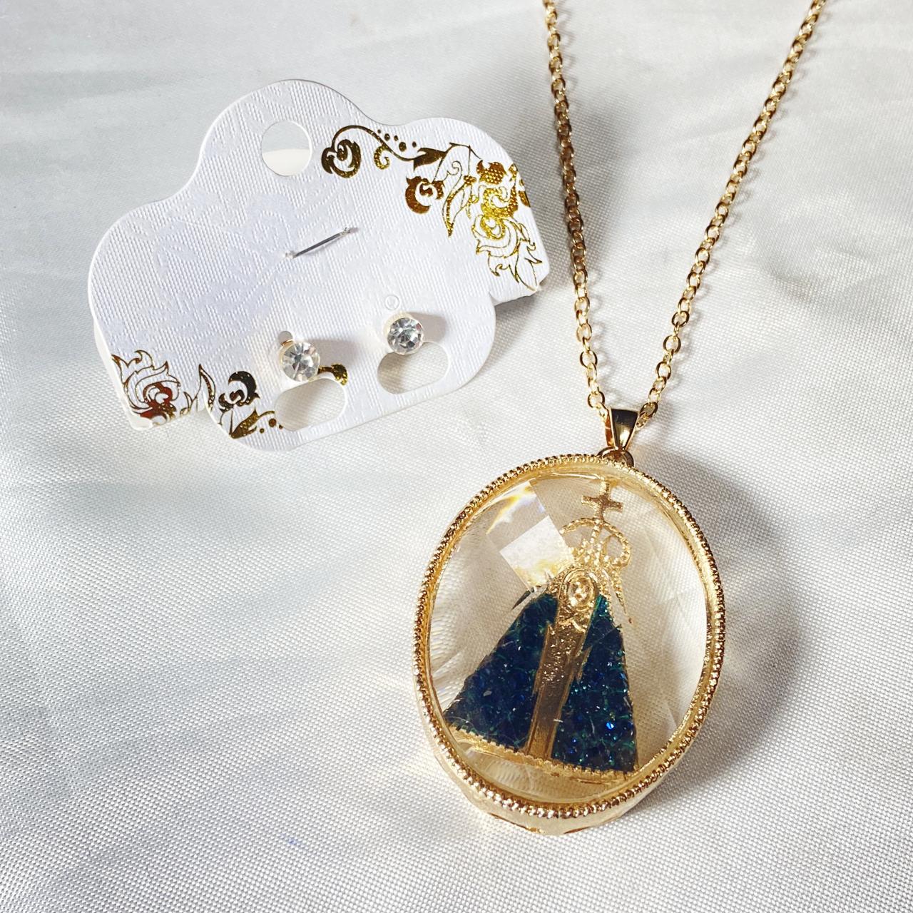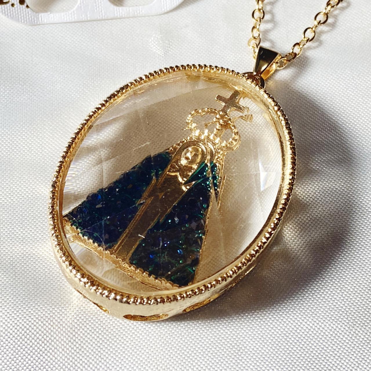 CORRENTE DOURADA COM BRINCO NOSSA SENHORA APARECIDA VIDRO (1 UNIDADE)