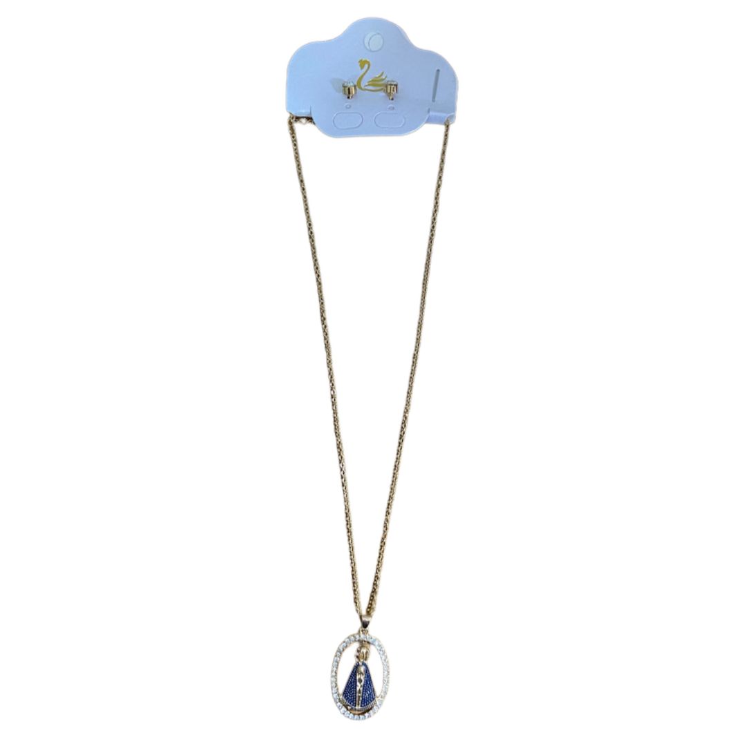 CORRENTE DOURADA COM BRINCO PONTA DE LUZ NOSSA SENHORA APARECIDA MOD 08 ( 1 UNIDADE)
