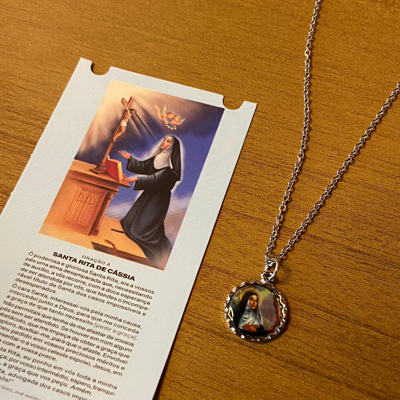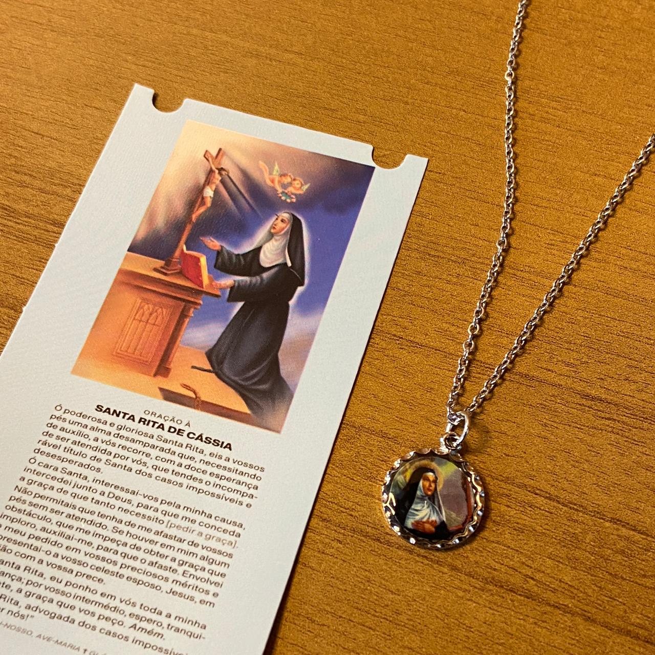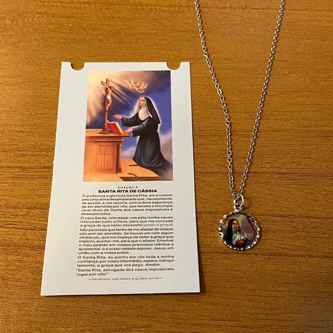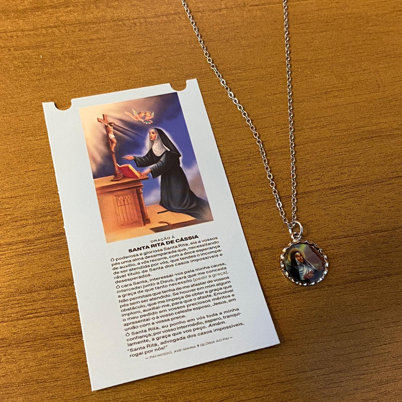 CORRENTE INOX COM MEDALHA RESINADA SANTA RITA (3 UNIDADES)