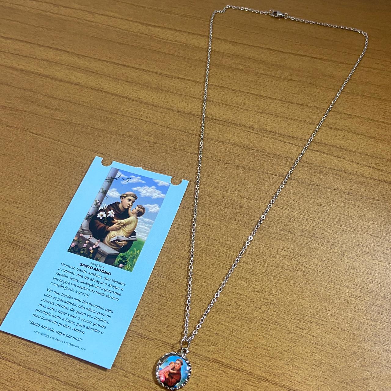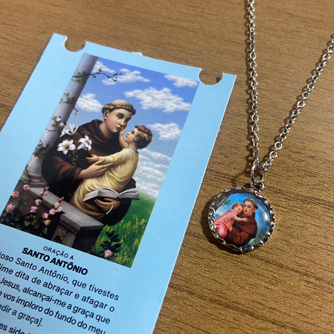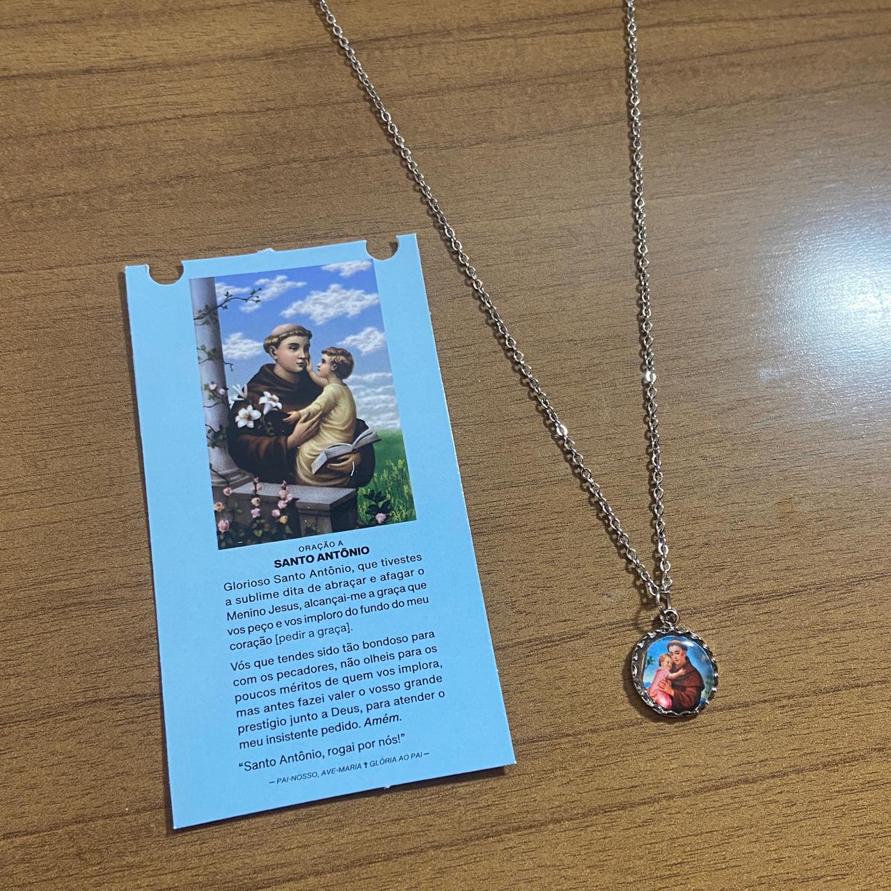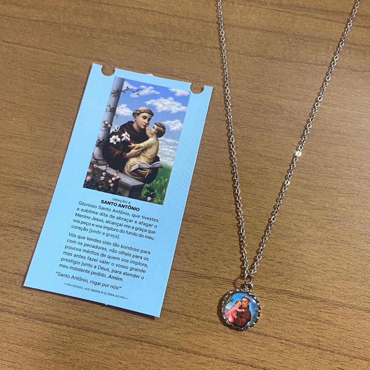 CORRENTE INOX COM MEDALHA RESINADA SANTO ANTÔNIO (3 UNIDADES)
