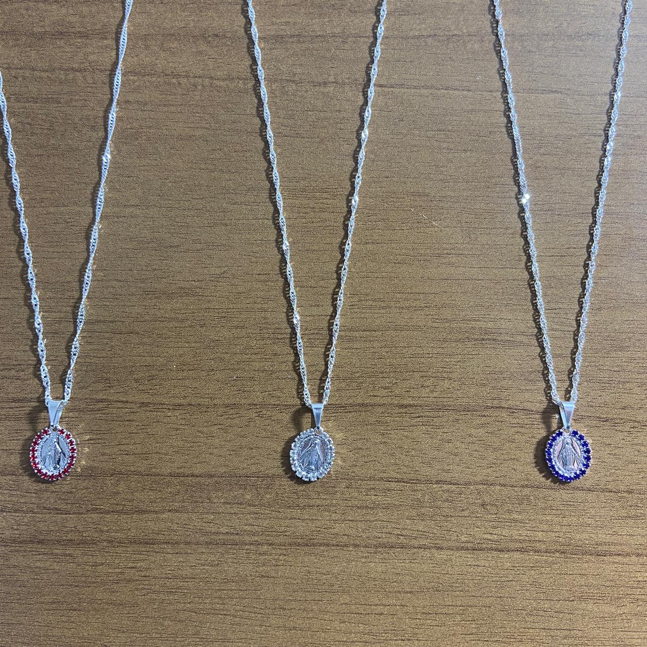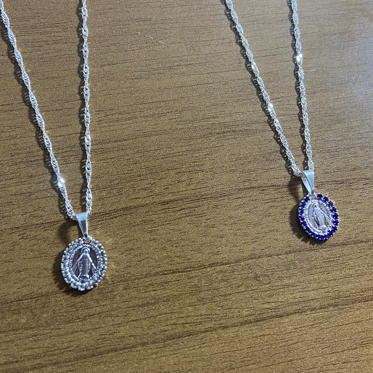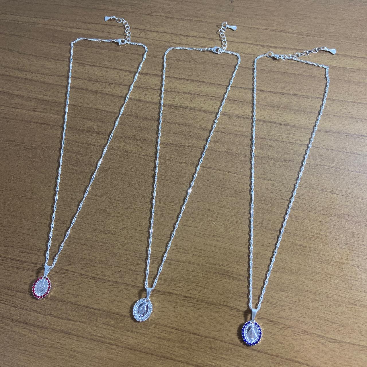 CORRENTE PRATEADA NOSSA SENHORA DAS GRAÇAS MODELOS SORTIDOS ( 3 UNIDADES)
