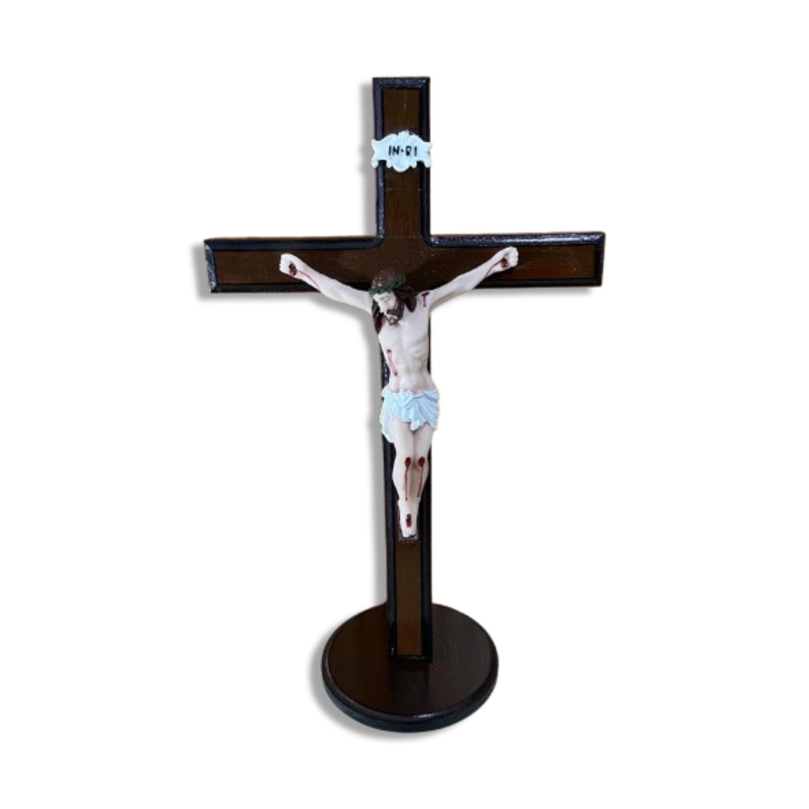CRUCIFIXO MADEIRA DE MESA COM CRISTO DE RESINA NACIONAL 39,5CM (1 UNIDADE)