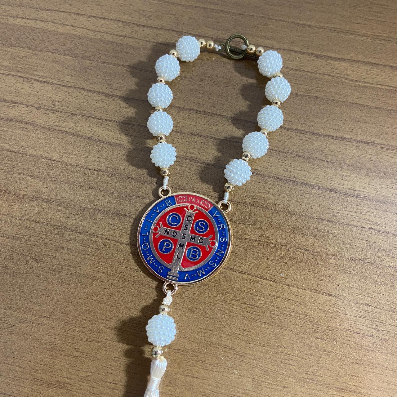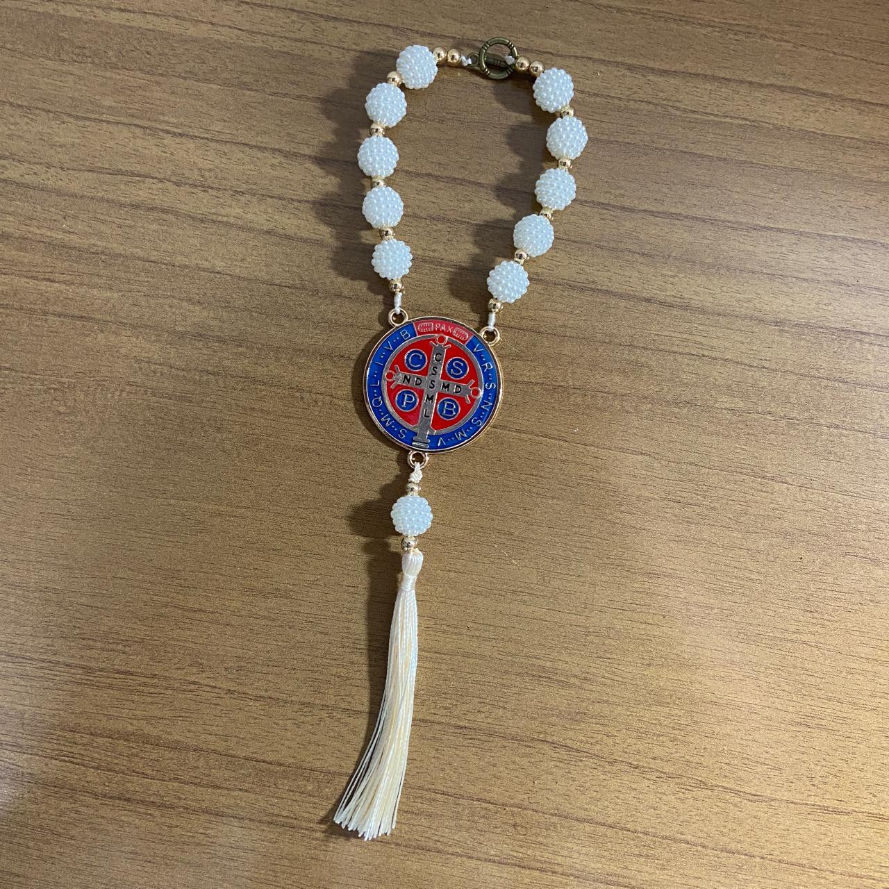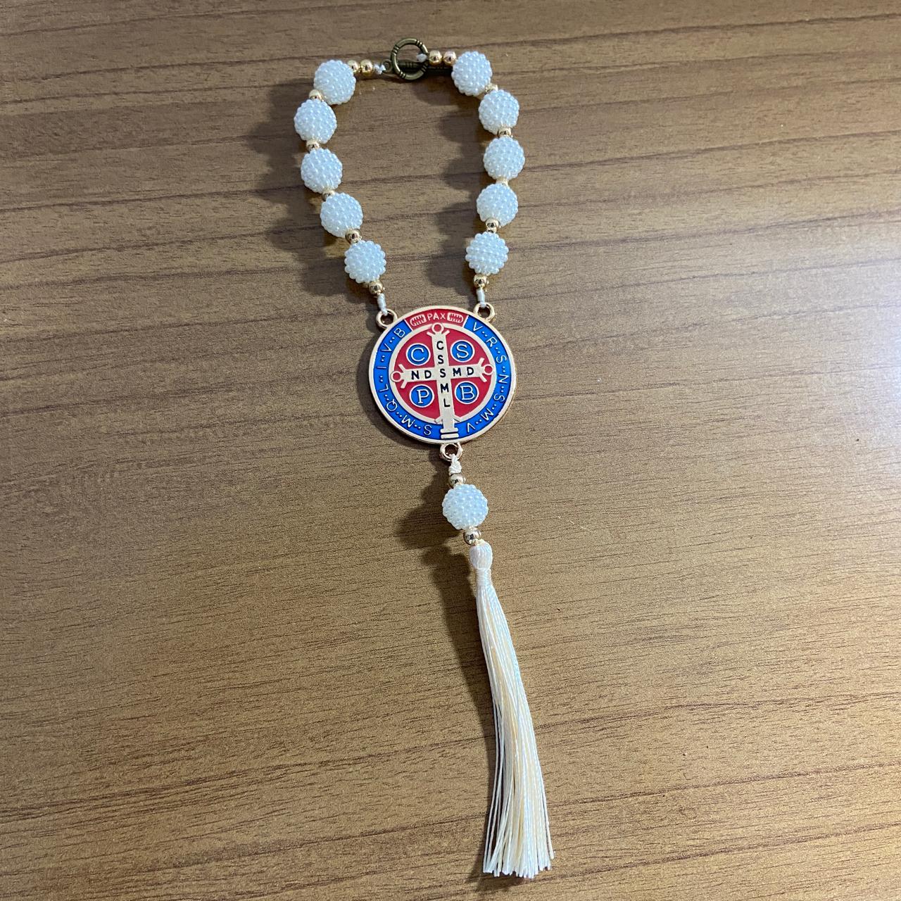 DEZENA PARA CARRO MEDALHA SÃO BENTO AMORA BRANCA 12MM (3 UNIDADES)