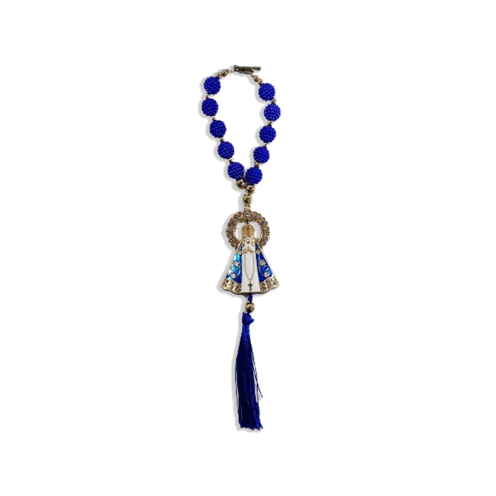 DEZENA PARA CARRO NOSSA SENHORA APARECIDA BRANCA AMORA AZUL 12MM MOD2 (3 UNIDADES)