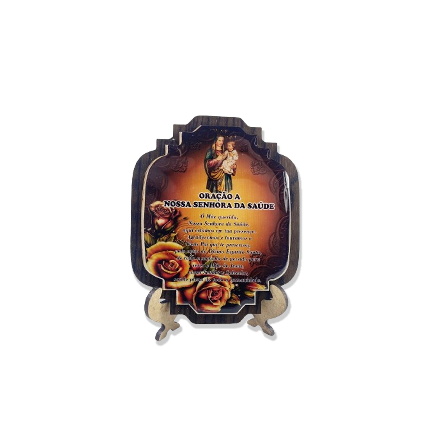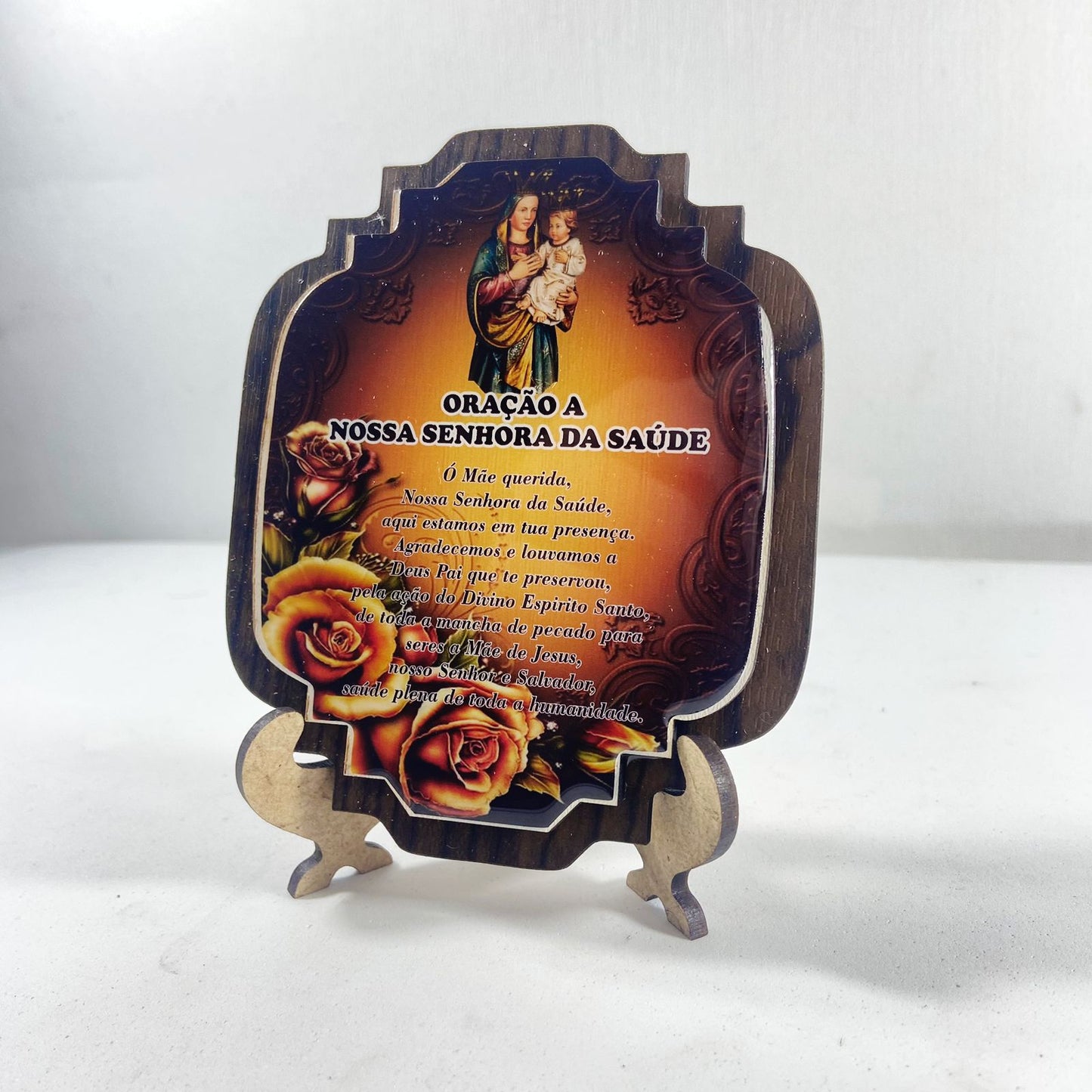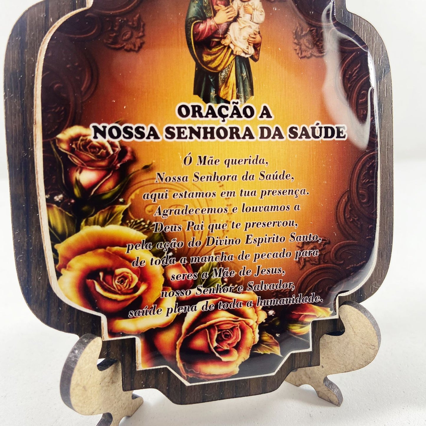 ENFEITE DE MESA MDF RESINADO NOSSA SENHORA DA SAÚDE (1 UNIDADE)
