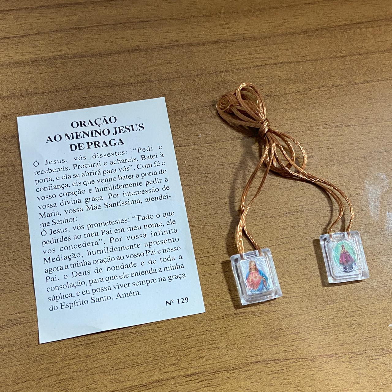 ESCAPULÁRIO CORDINHA SAGRADO CORAÇÃO DE JESUS E MENINO JESUS DE PRAGA (12 UNIDADES)