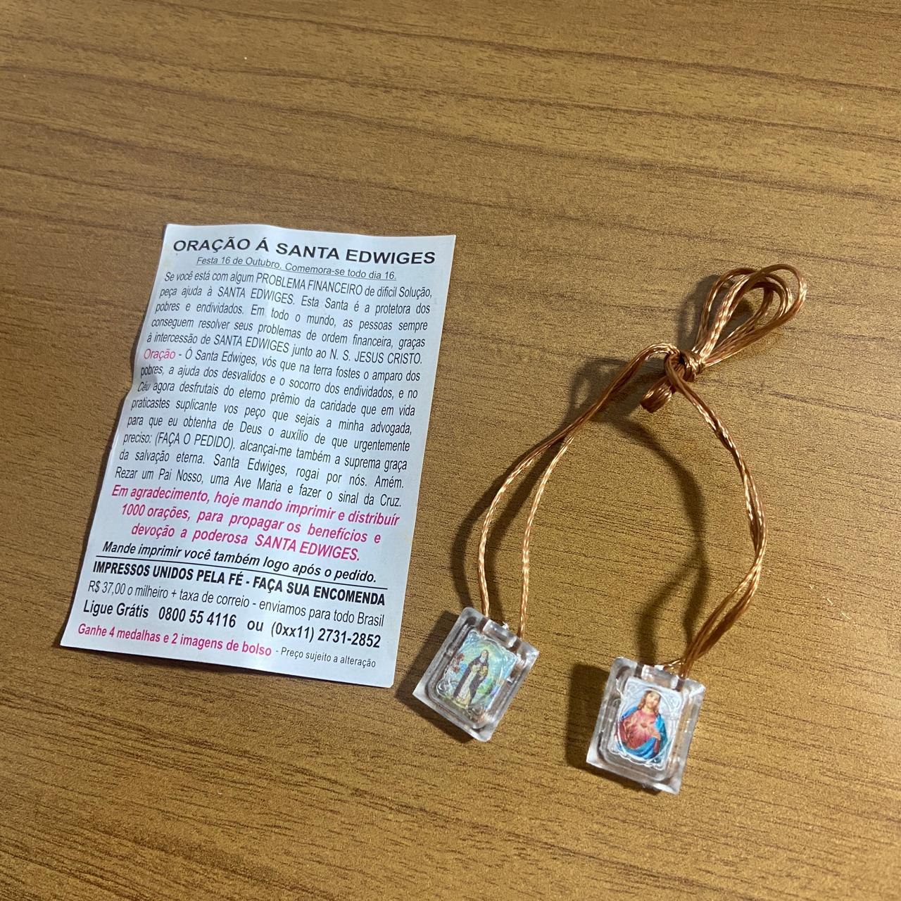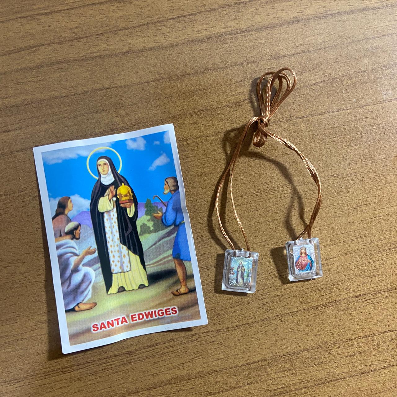 ESCAPULÁRIO CORDINHA SANTA EDWIGES E SAGRADO CORAÇÃO DE JESUS (12 UNIDADES)