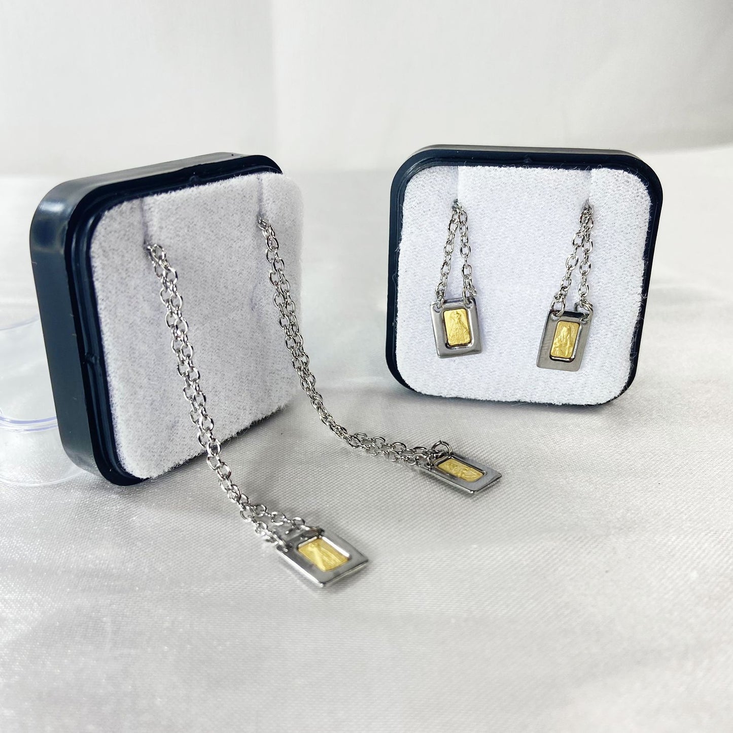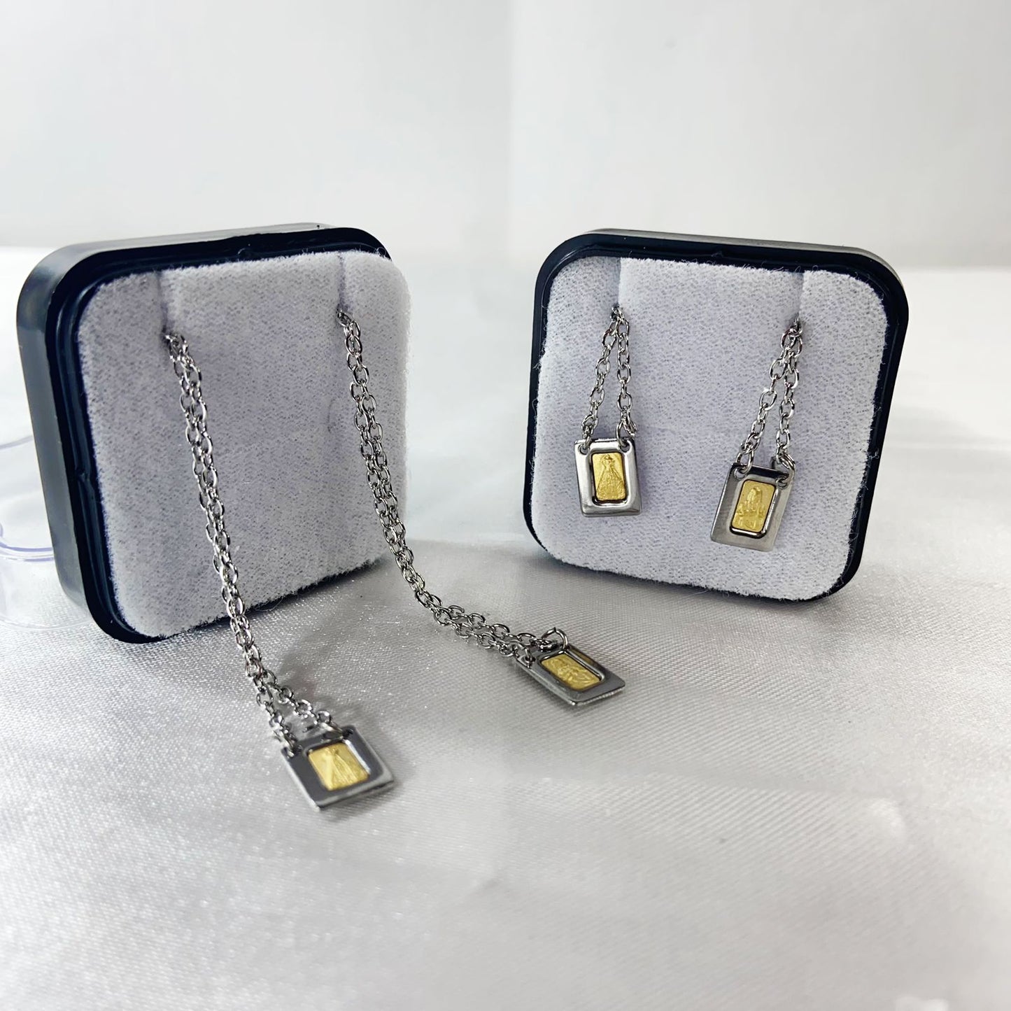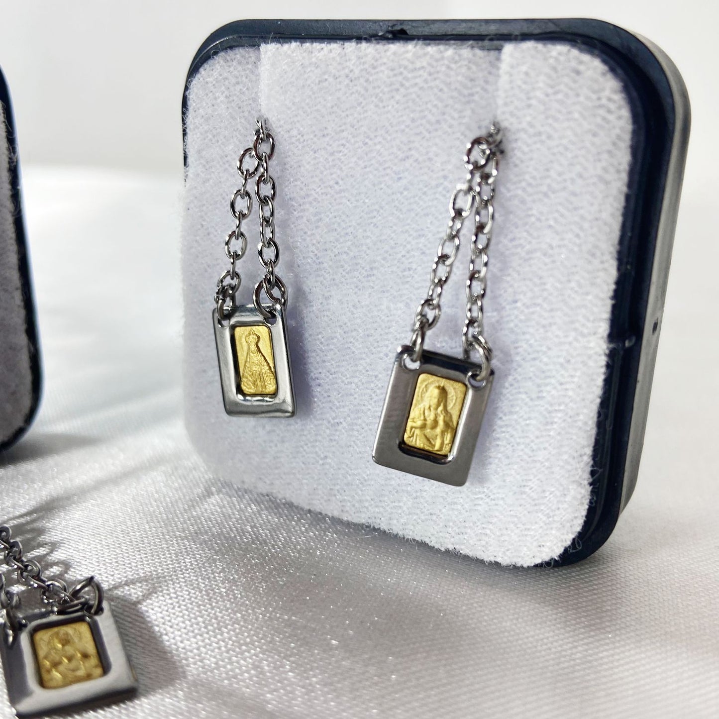 ESCAPULÁRIO DE INOX PLACA DOURADA SAGRADO CORAÇÃO DE JESUS E NOSSA SENHORA APARECIDA (6 UNIDADES)