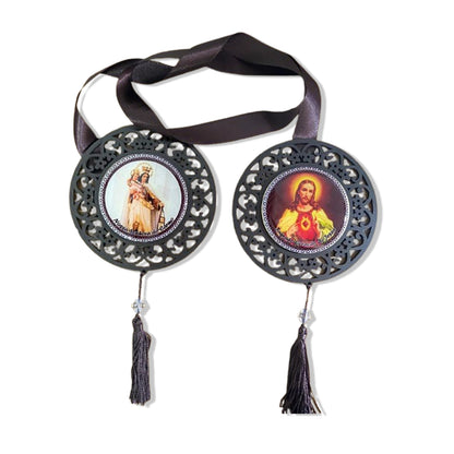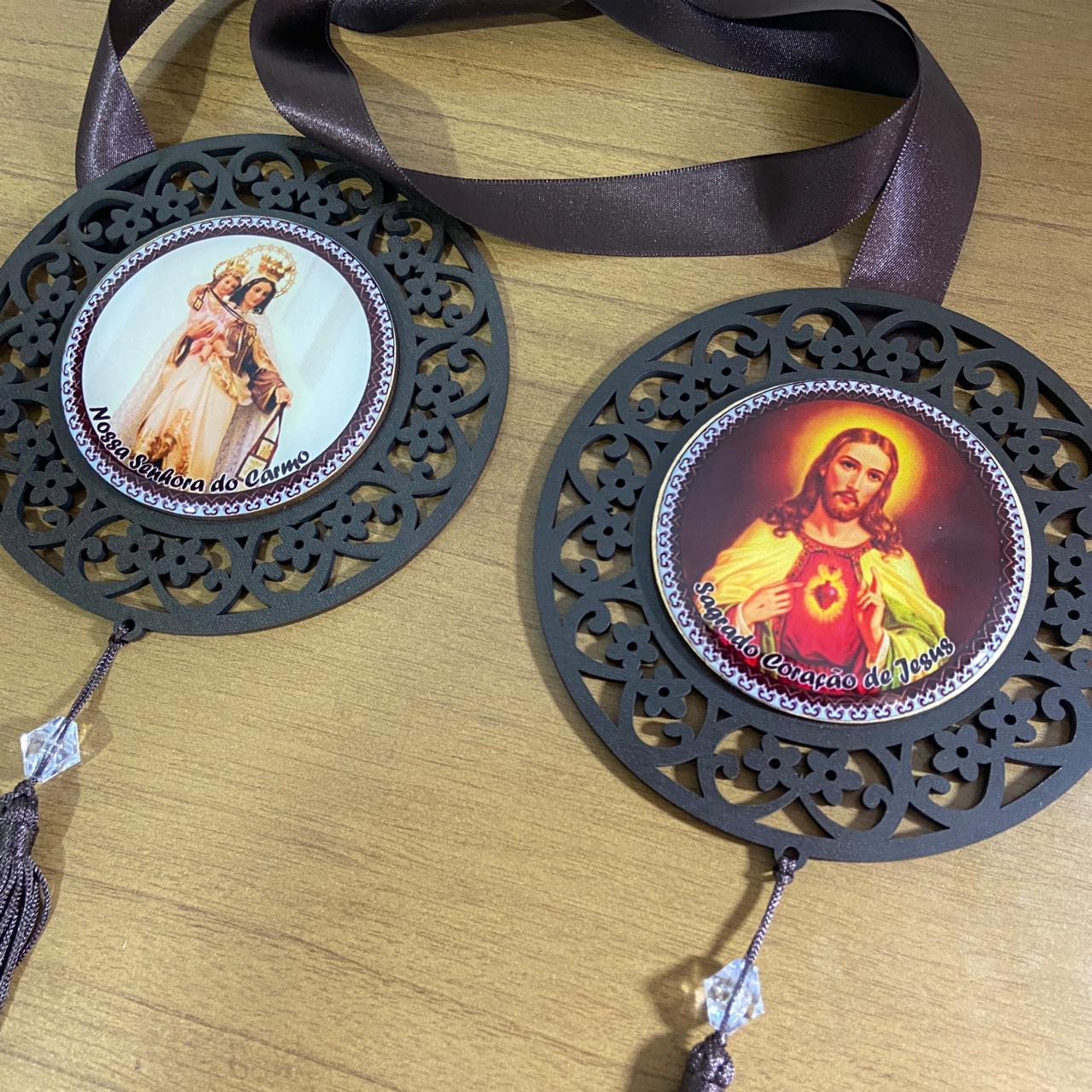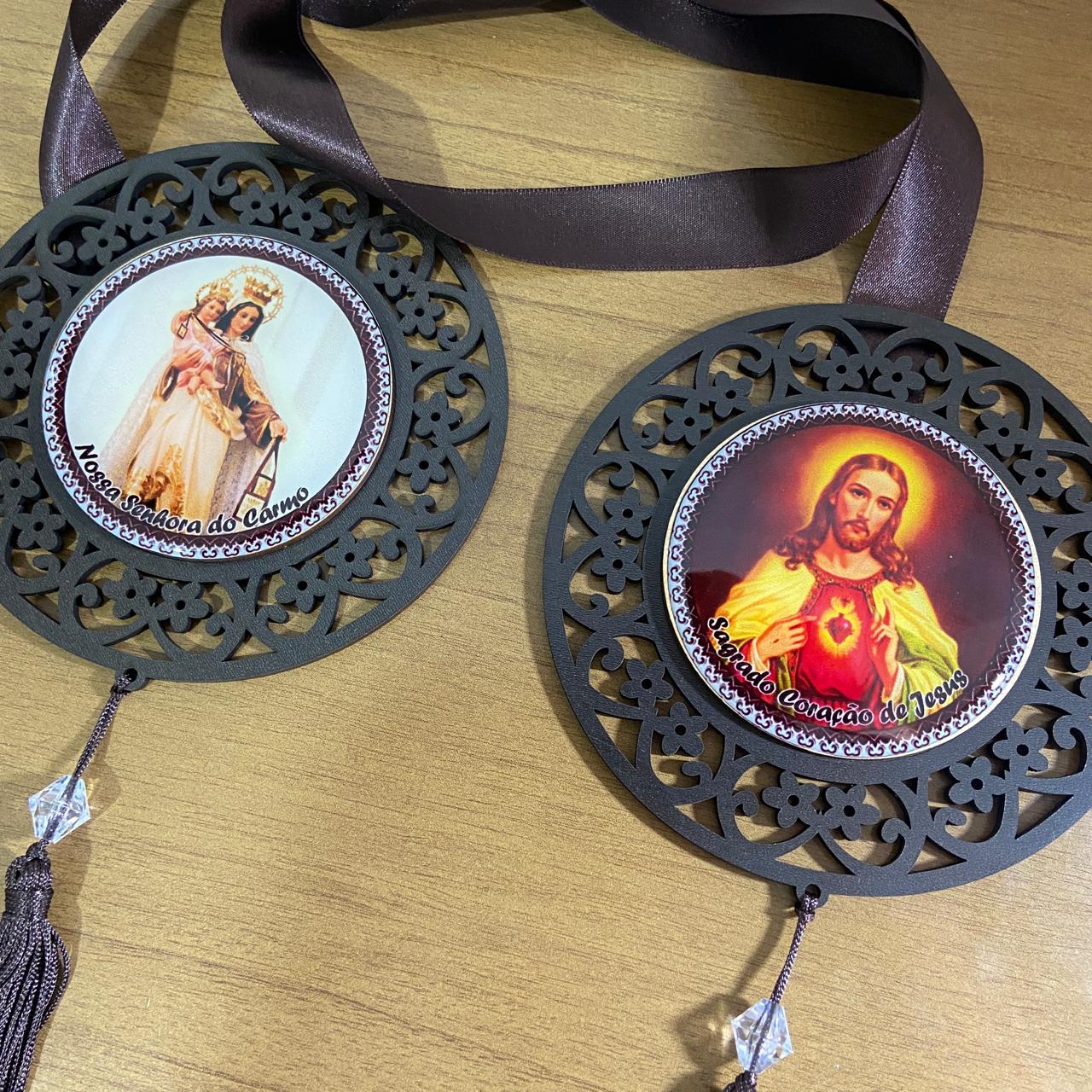 ESCAPULÁRIO DE PORTA TABACO SAGRADO CORAÇÃO DE JESUS E NOSSA SENHORA DO CARMO (1 UNIDADE)