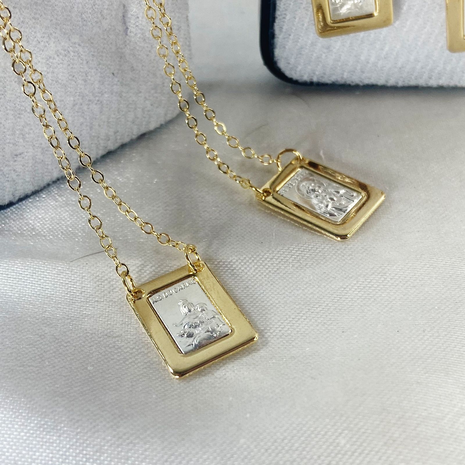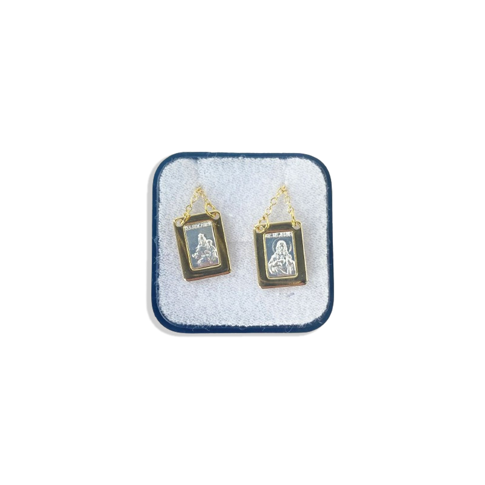 ESCAPULÁRIO DOURADO PLACA PRATEADA SAGRADO CORAÇÃO DE JESUS E NOSSA SENHORA DO CARMO (3 UNIDADES)