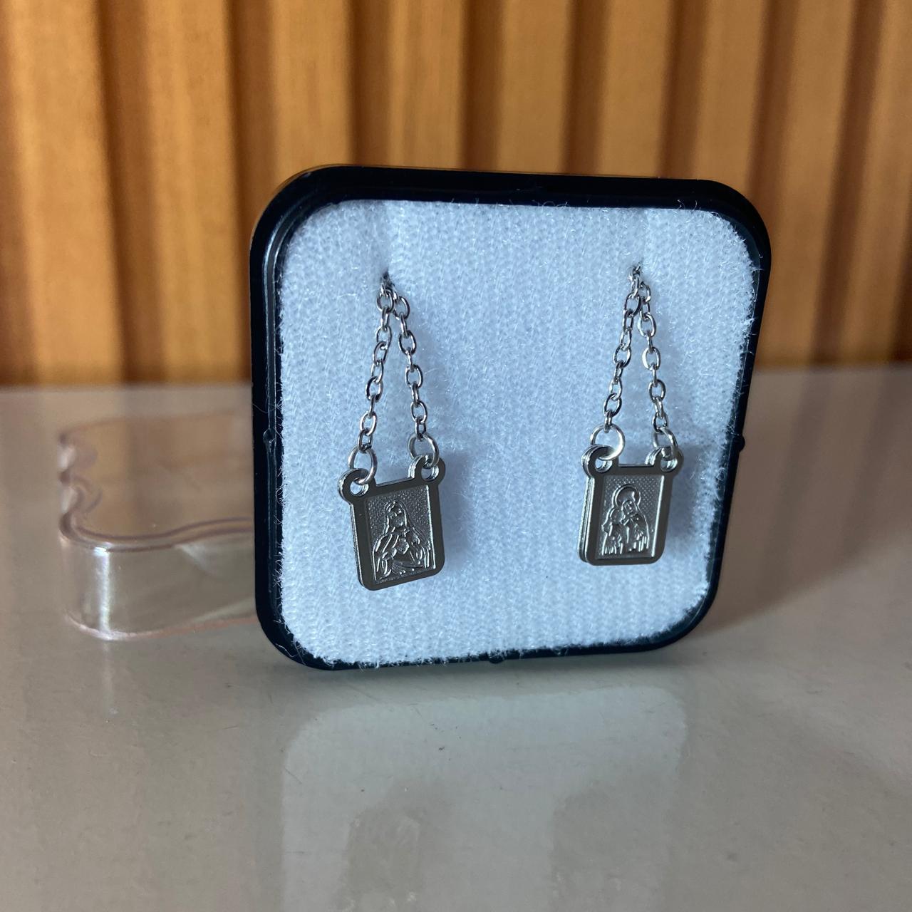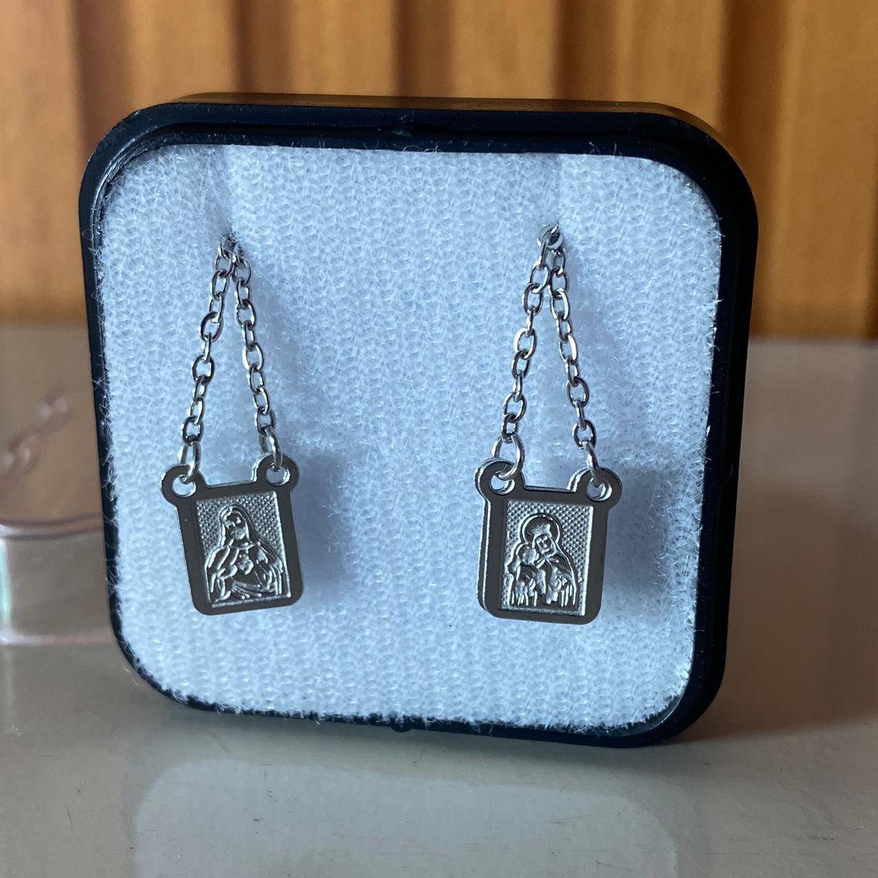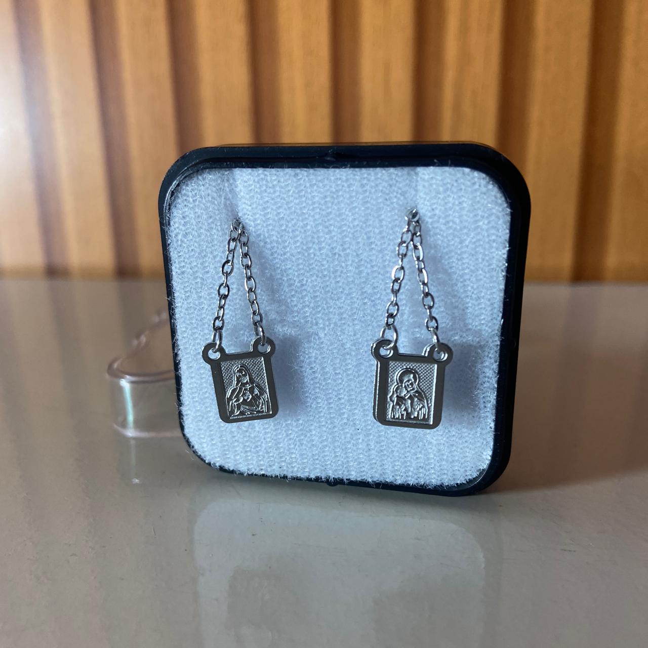 ESCAPULÁRIO INOX DUPLO SAGRADO CORAÇÃO DE JESUS E NOSSA SENHORA DO CARMO P (6 UNIDADES)