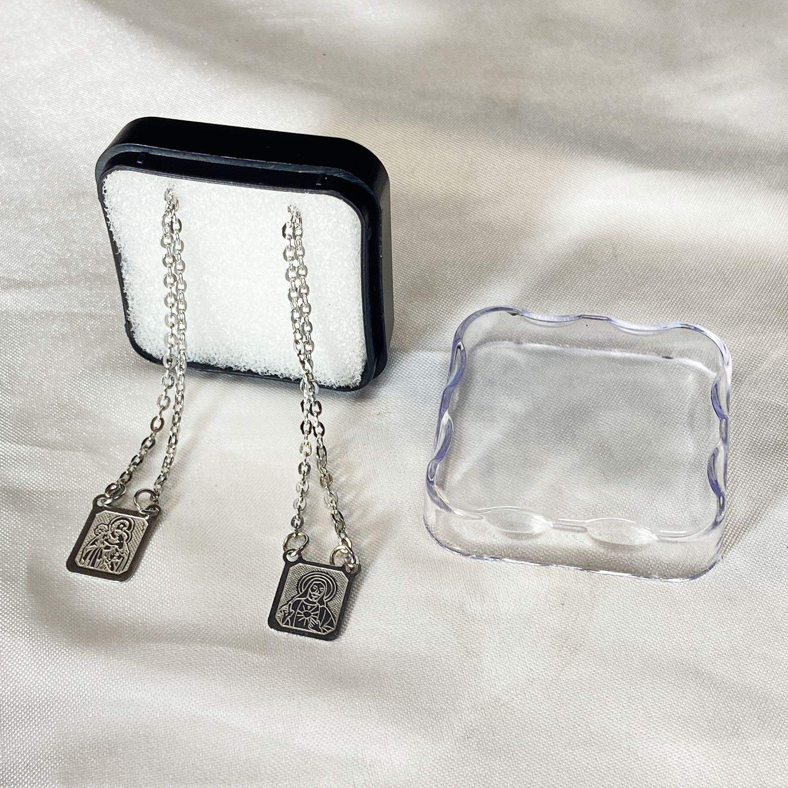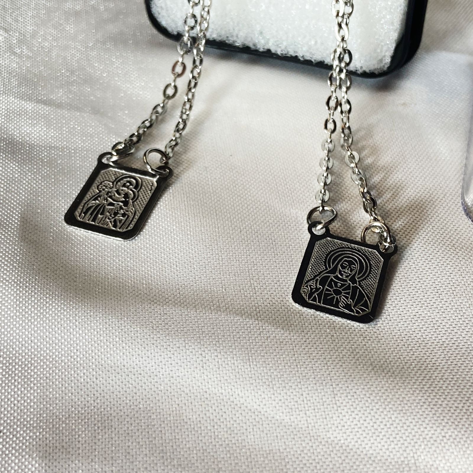 ESCAPULÁRIO INOX LASER SAGRADO CORAÇÃO DE JESUS E SÃO JOSÉ (6 UNIDADES)