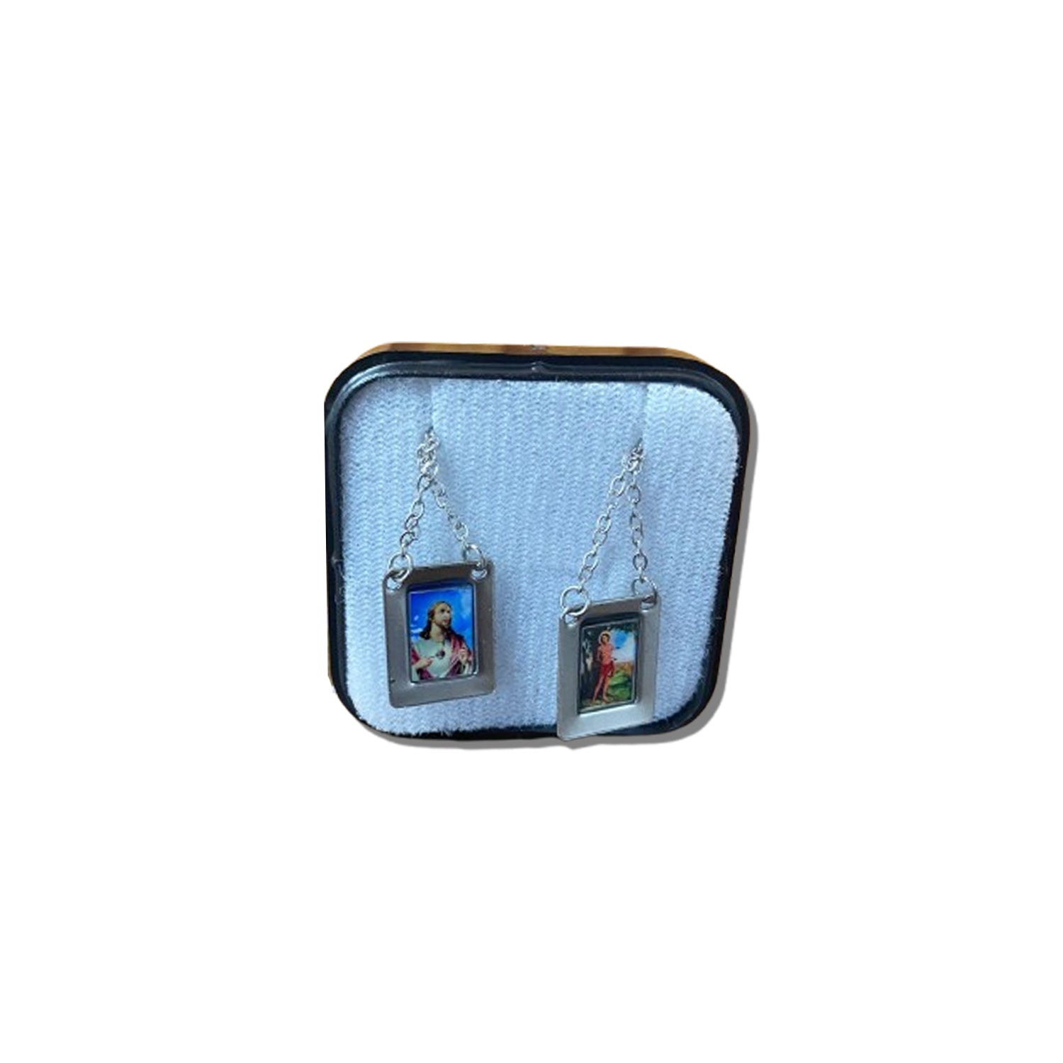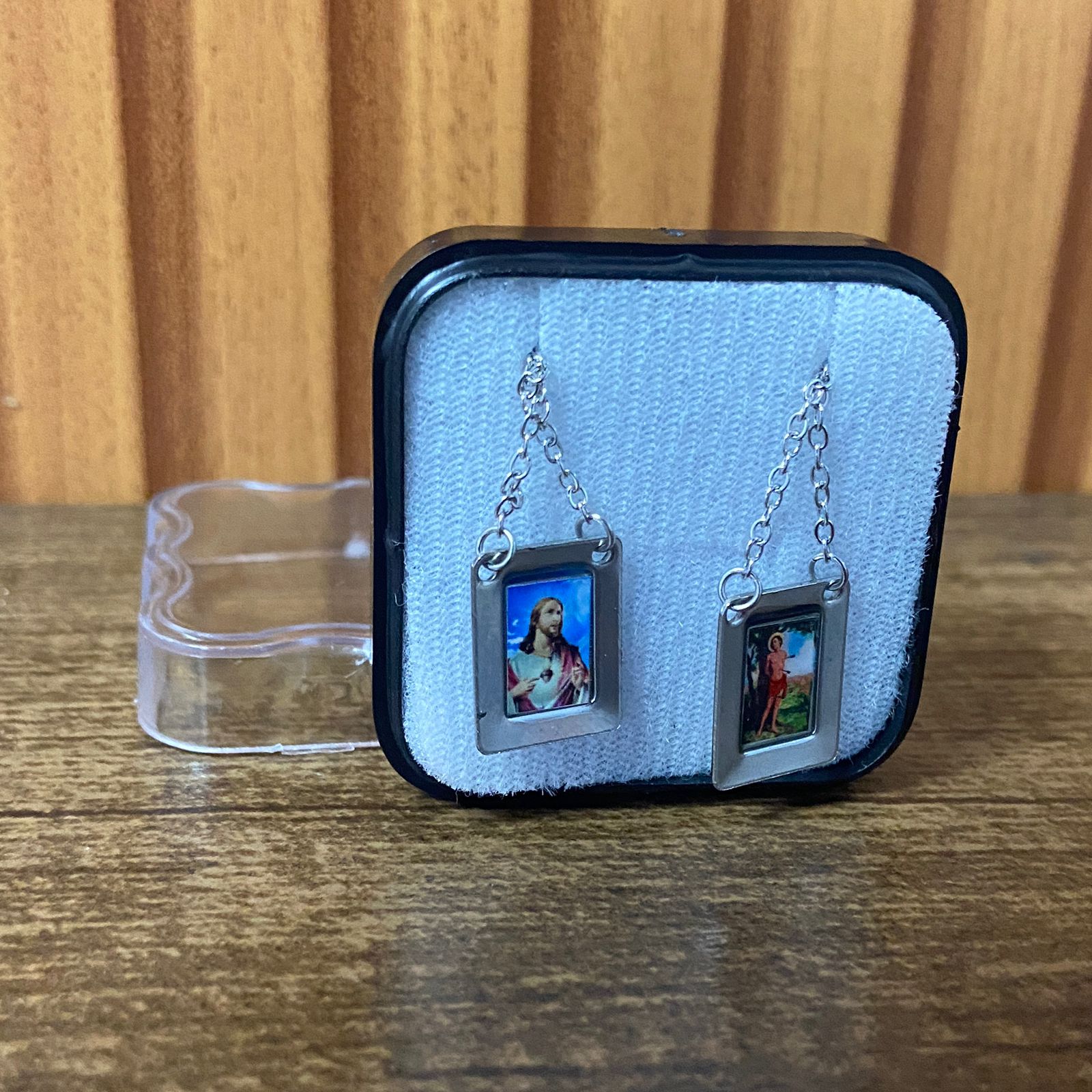 ESCAPULÁRIO INOX RESINADO COLORIDO SAGRADO CORAÇÃO DE JESUS E SÃO SEBASTIÃO (6 UNIDADES)