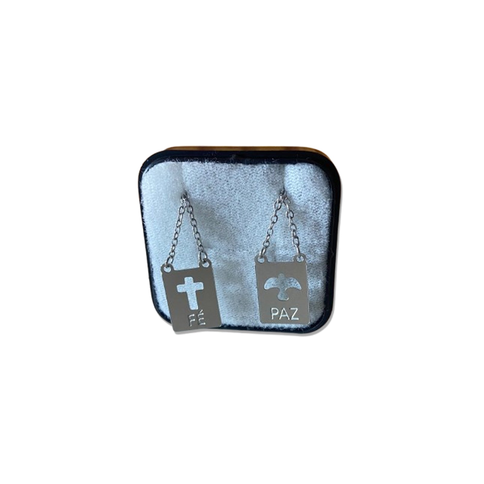 ESCAPULÁRIO INOX VAZADO FÉ E PAZ (6 UNIDADES)