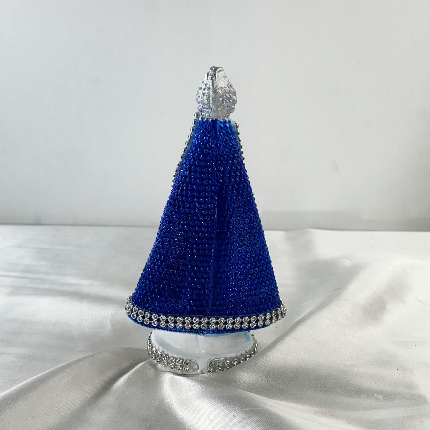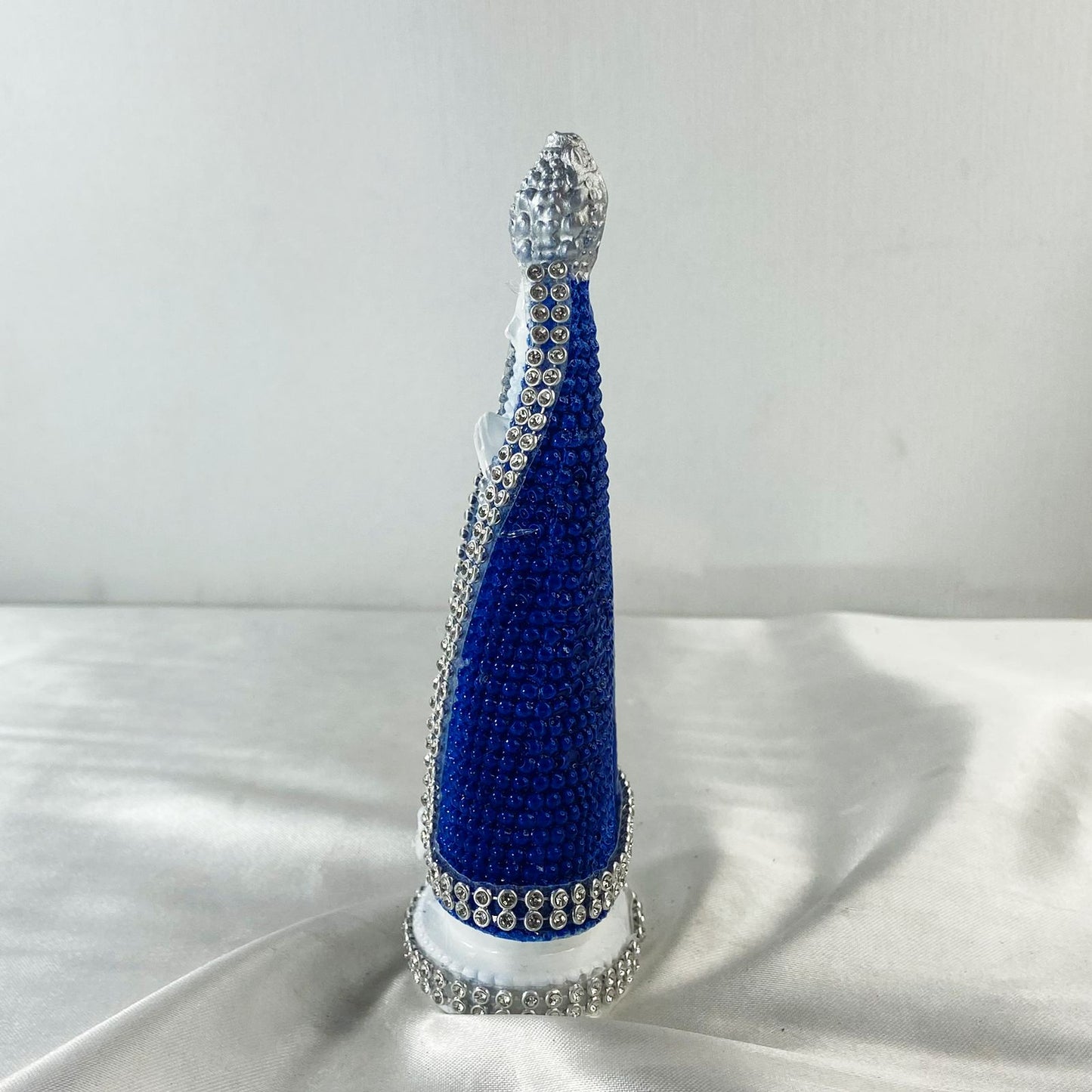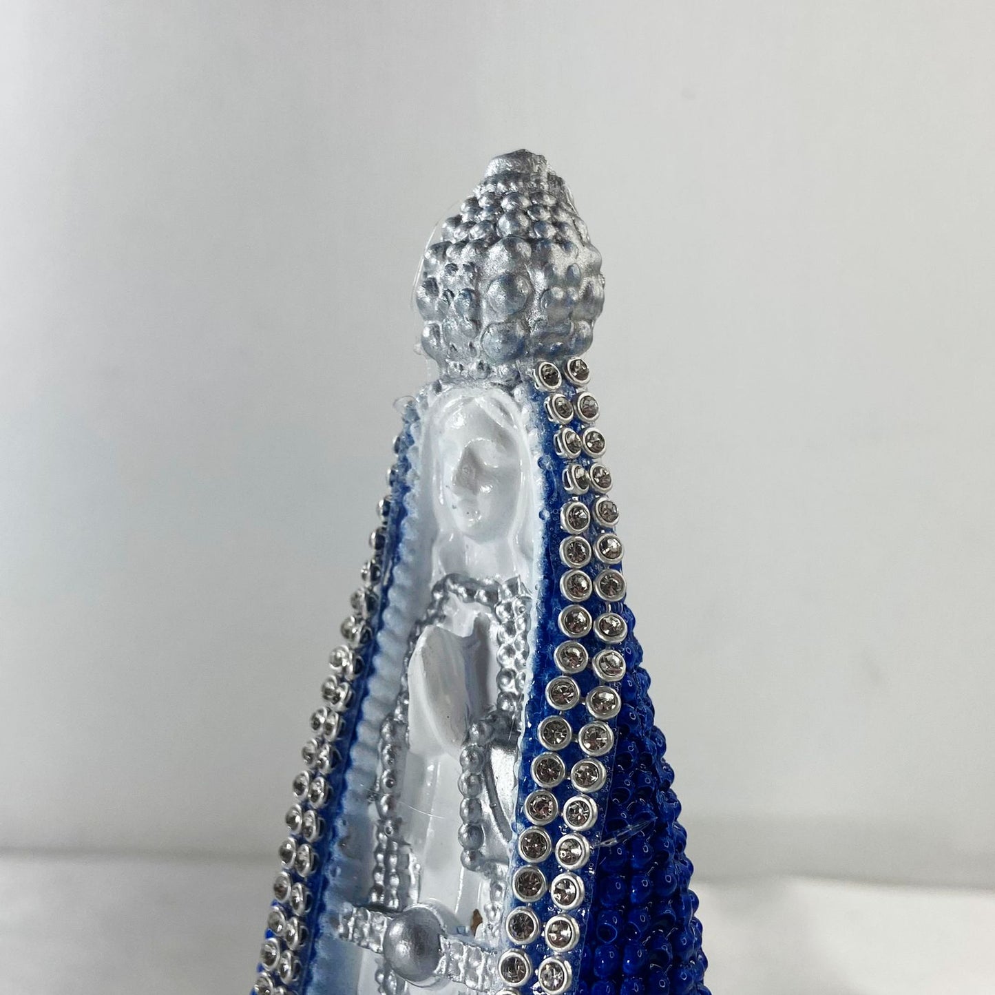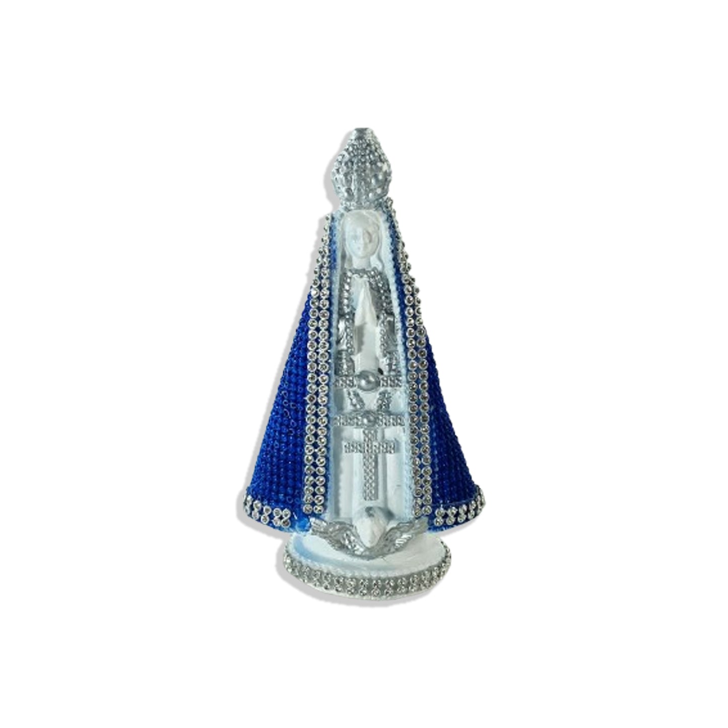 IMAGEM DE GESSO NOSSA SENHORA APARECIDA BRANCA E AZUL COM STRASS 14CM (1 UNIDADE)