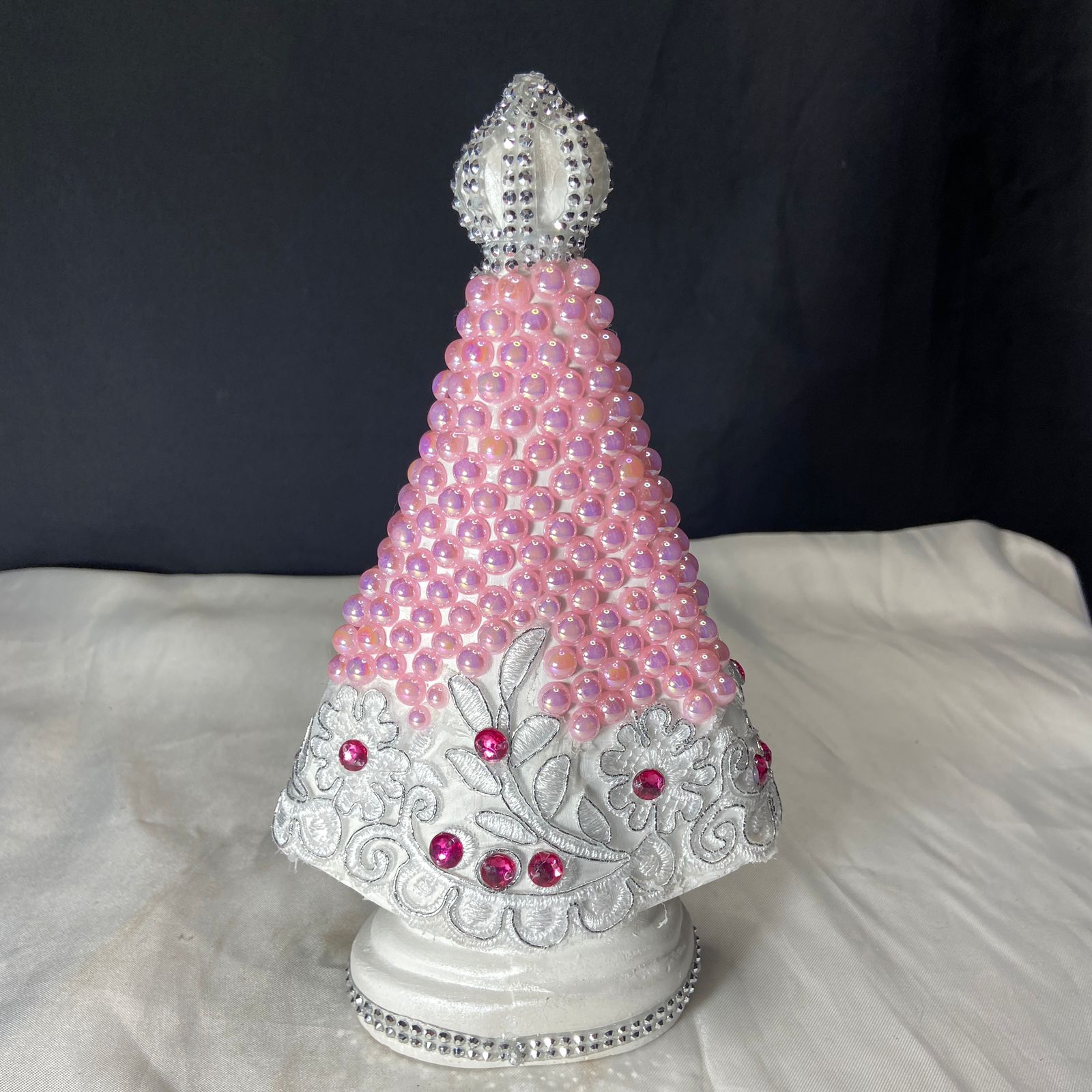 IMAGEM DE GESSO NOSSA SENHORA APARECIDA PÉROLA COM STRASS MOD14 23CM (1 UNIDADE)