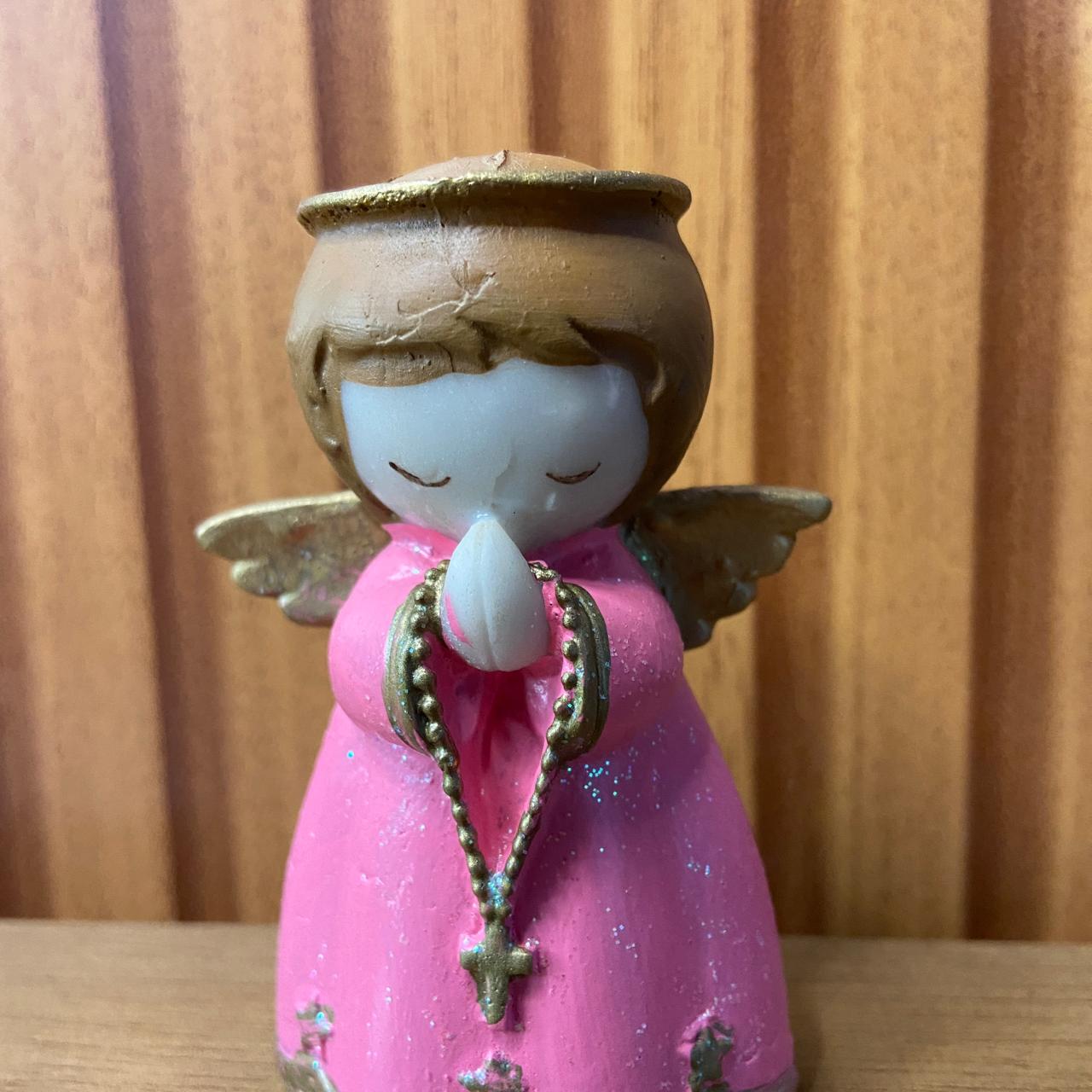 IMAGEM DE RESINA NACIONAL ANJINHO ROSA 07CM (3 UNIDADES)