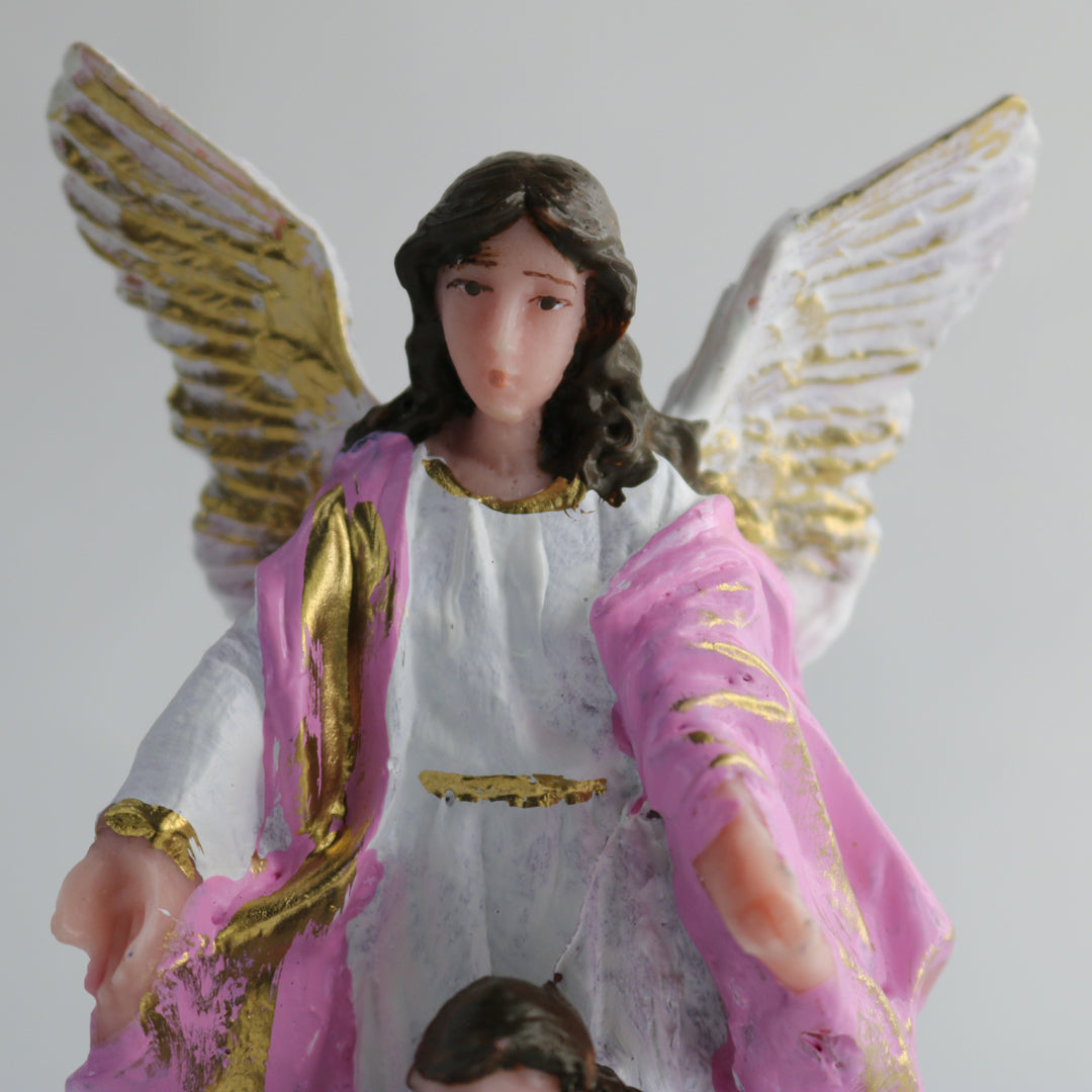 IMAGEM DE RESINA NACIONAL ANJO DA GUARDA ROSA COM CRIANÇA 14CM (1 UNIDADE)
