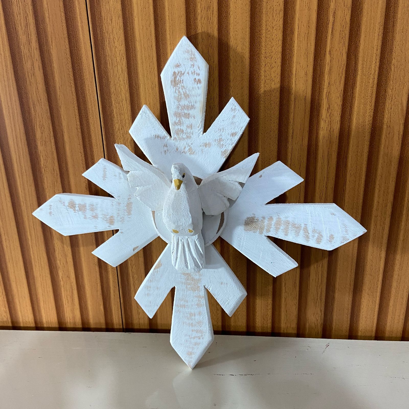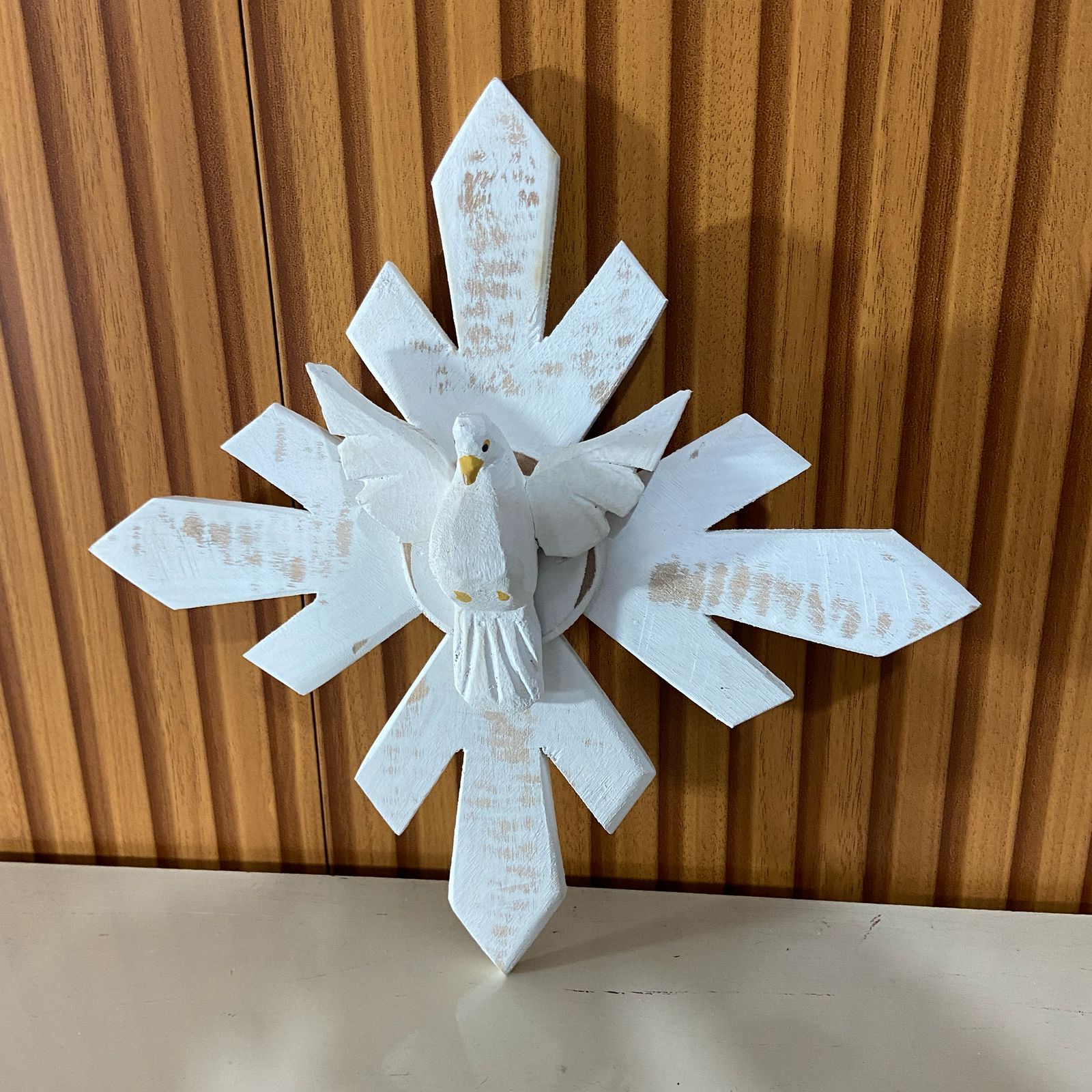 MANDALA MADEIRA BRANCA DIVINO ESPIRITO SANTO 26X27CM (1 UNIDADE)