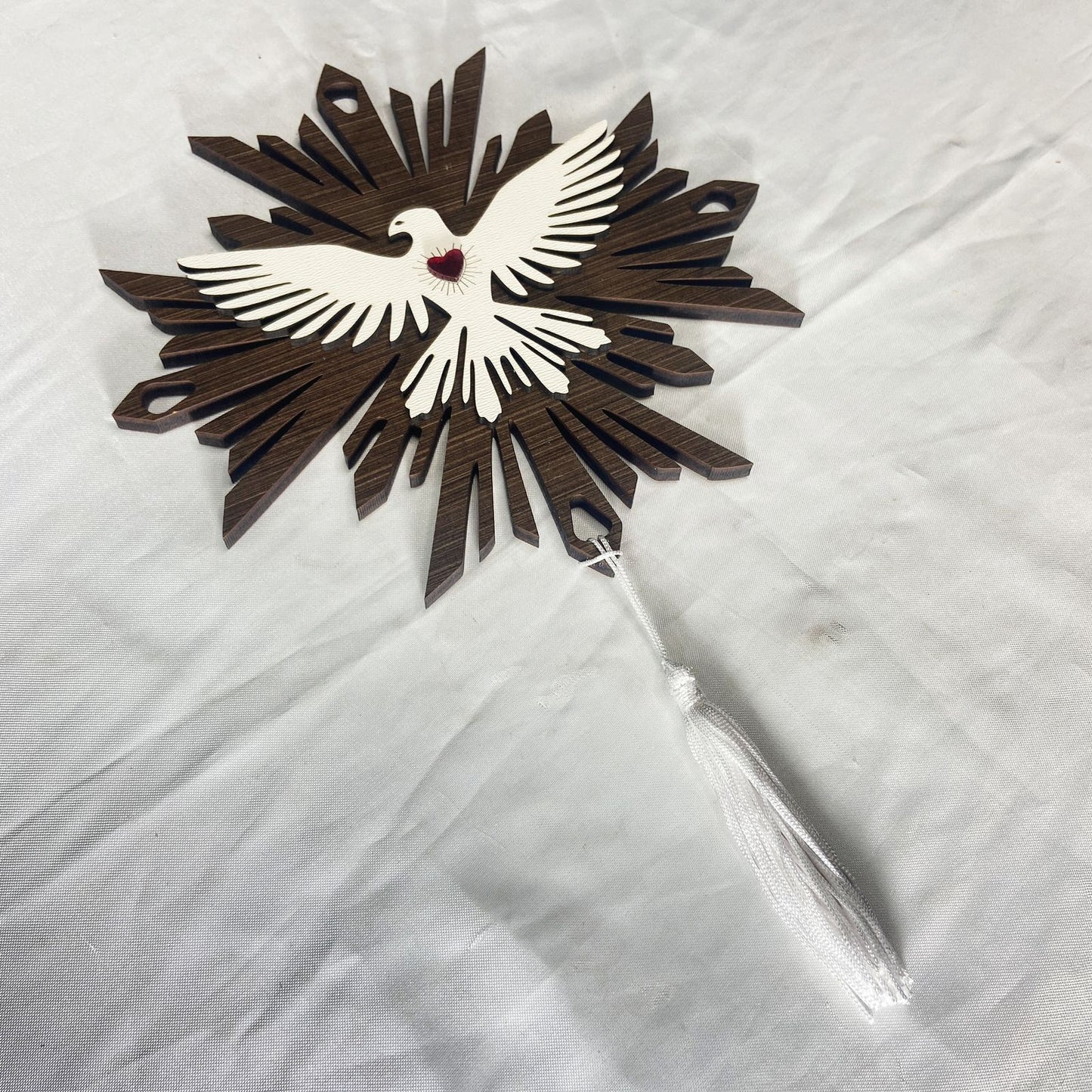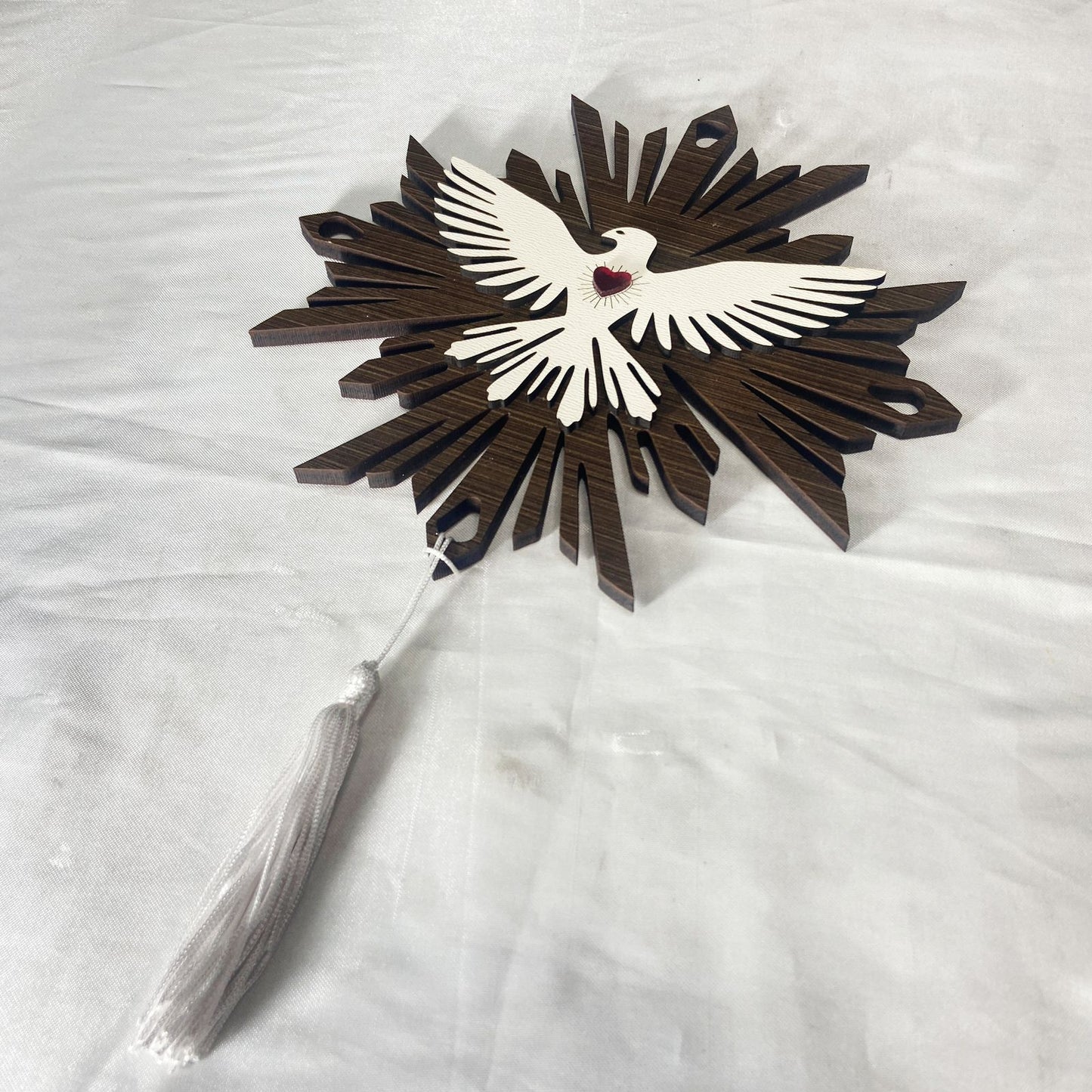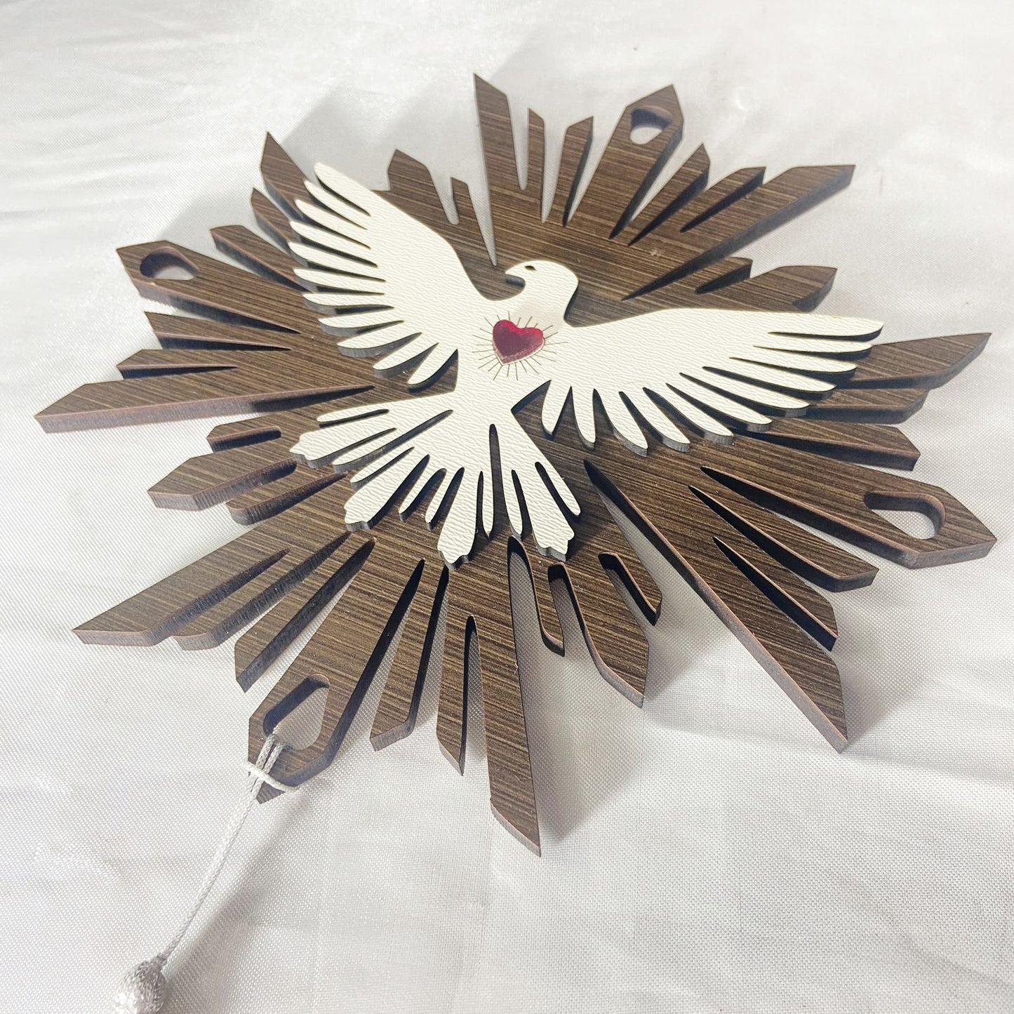 MANDALA MDF DIVINO ESPÍRITO SANTO CORAÇÃO EM ACRÍLICO 20CM (1 UNIDADE)