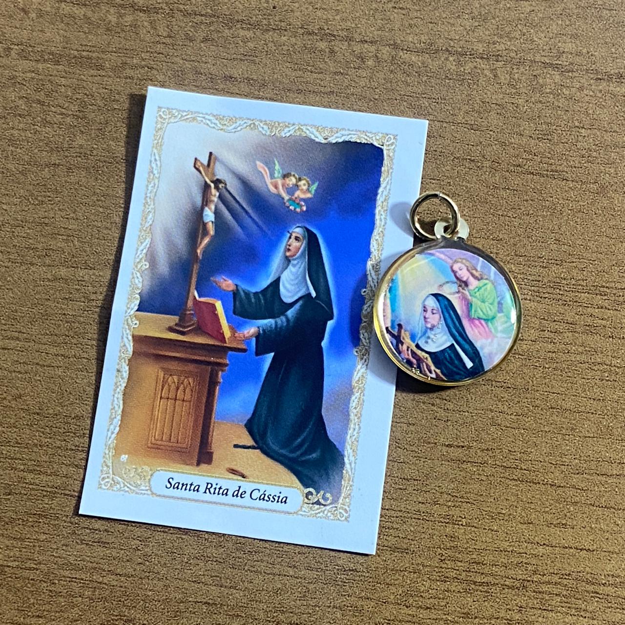 MEDALHA DUPLA FACE SANTA RITA DE CÁSSIA (12 UNIDADES)